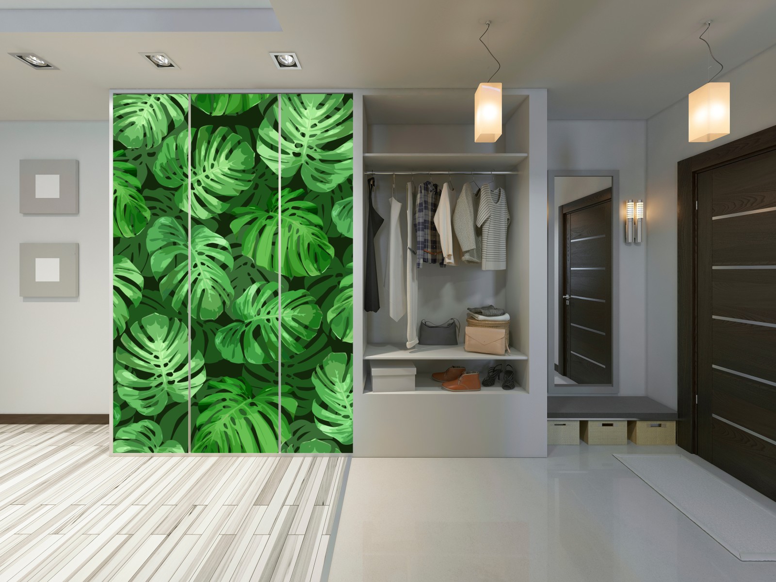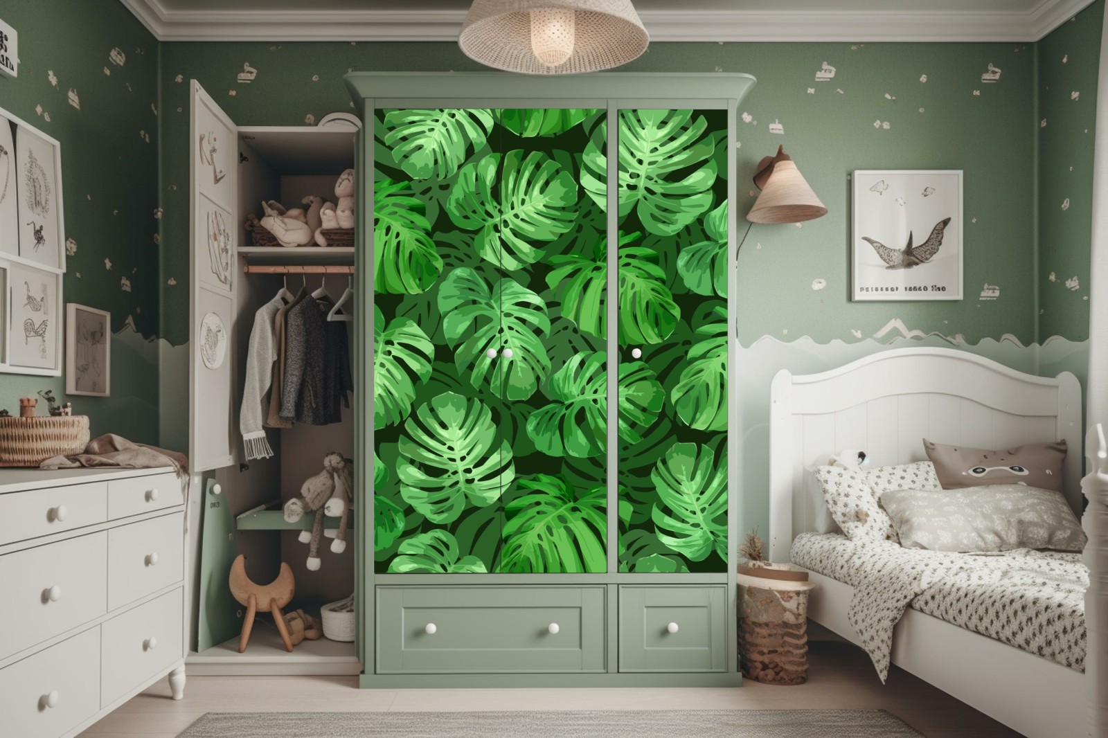 Üppige tropische Monstera-Blätter bilden ein lebendiges botanisches Muster, das jedem Raum natürliche Frische verleiht.