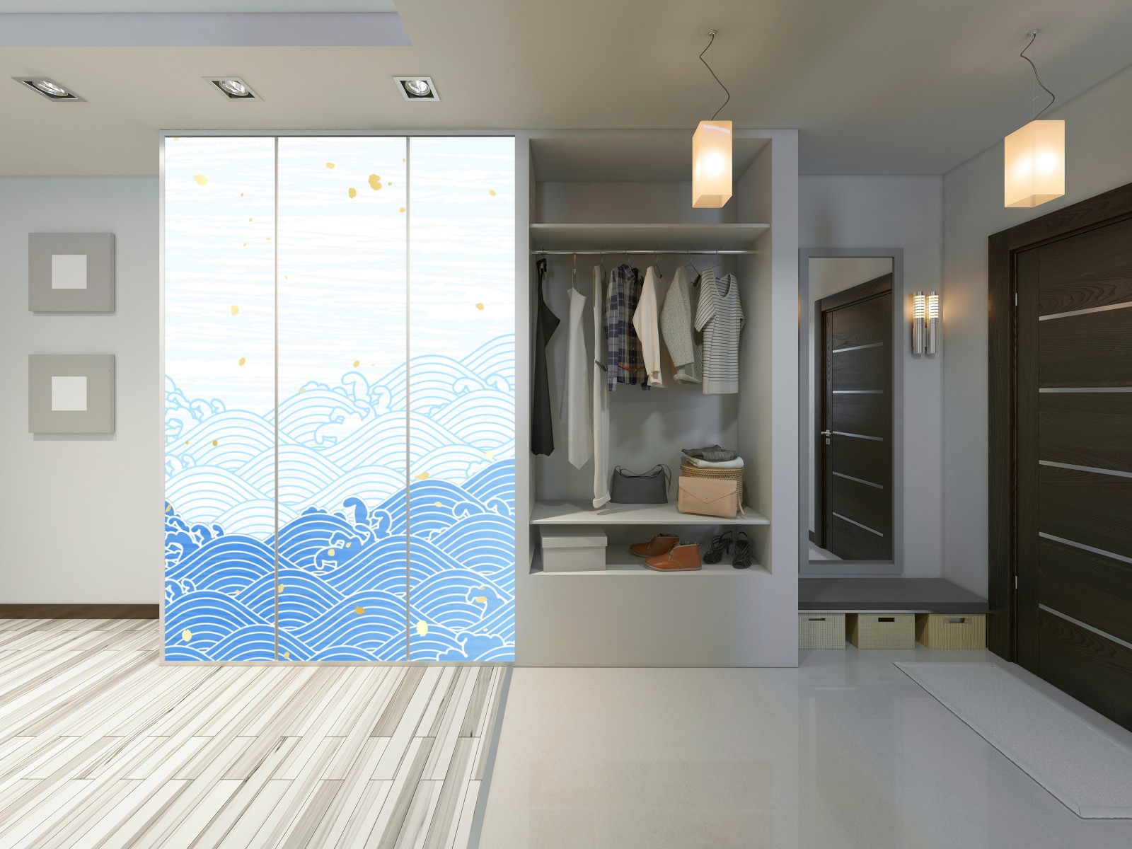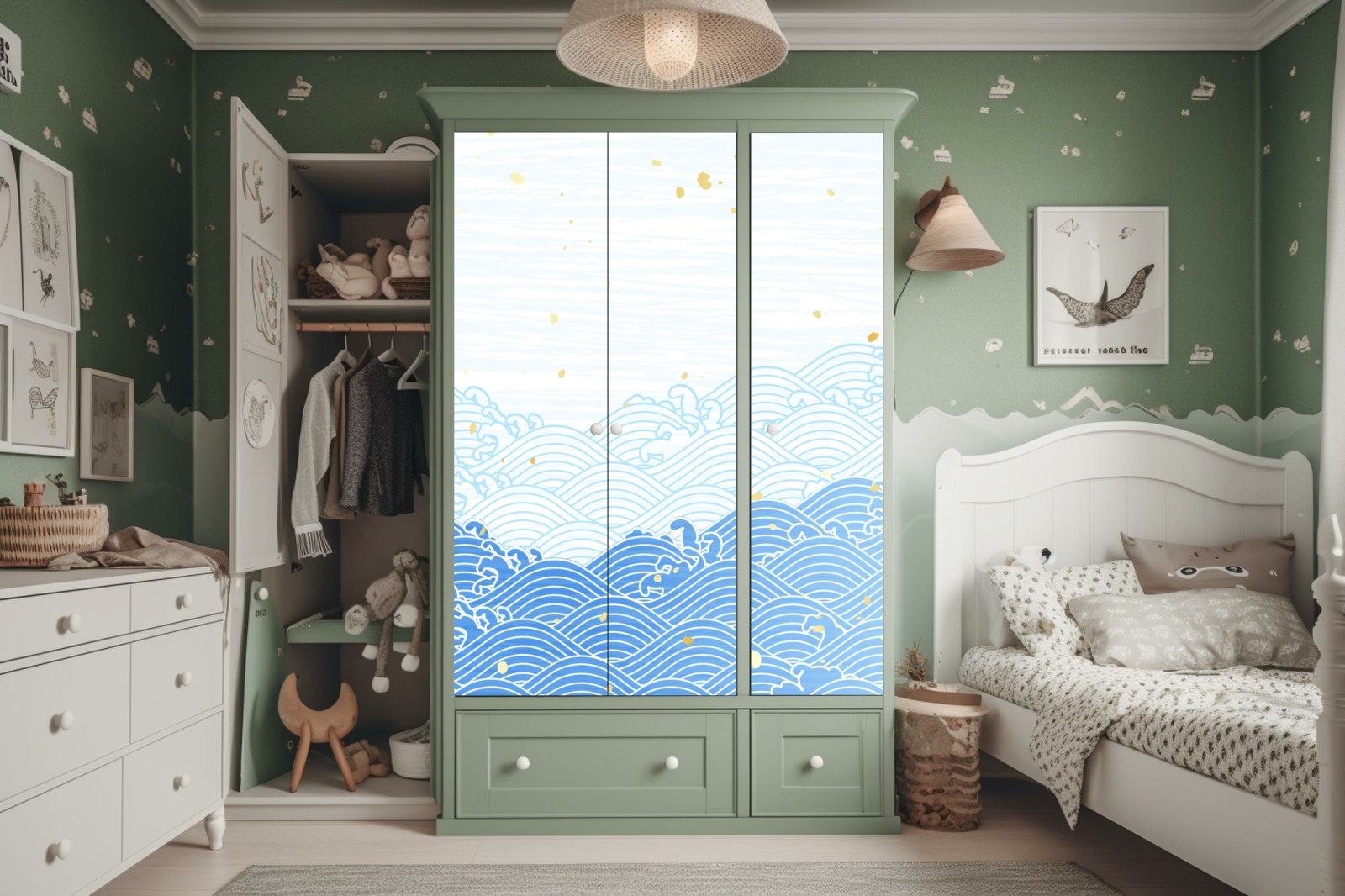 Schrankaufkleber ruhige blaue wellen mit goldakzenten