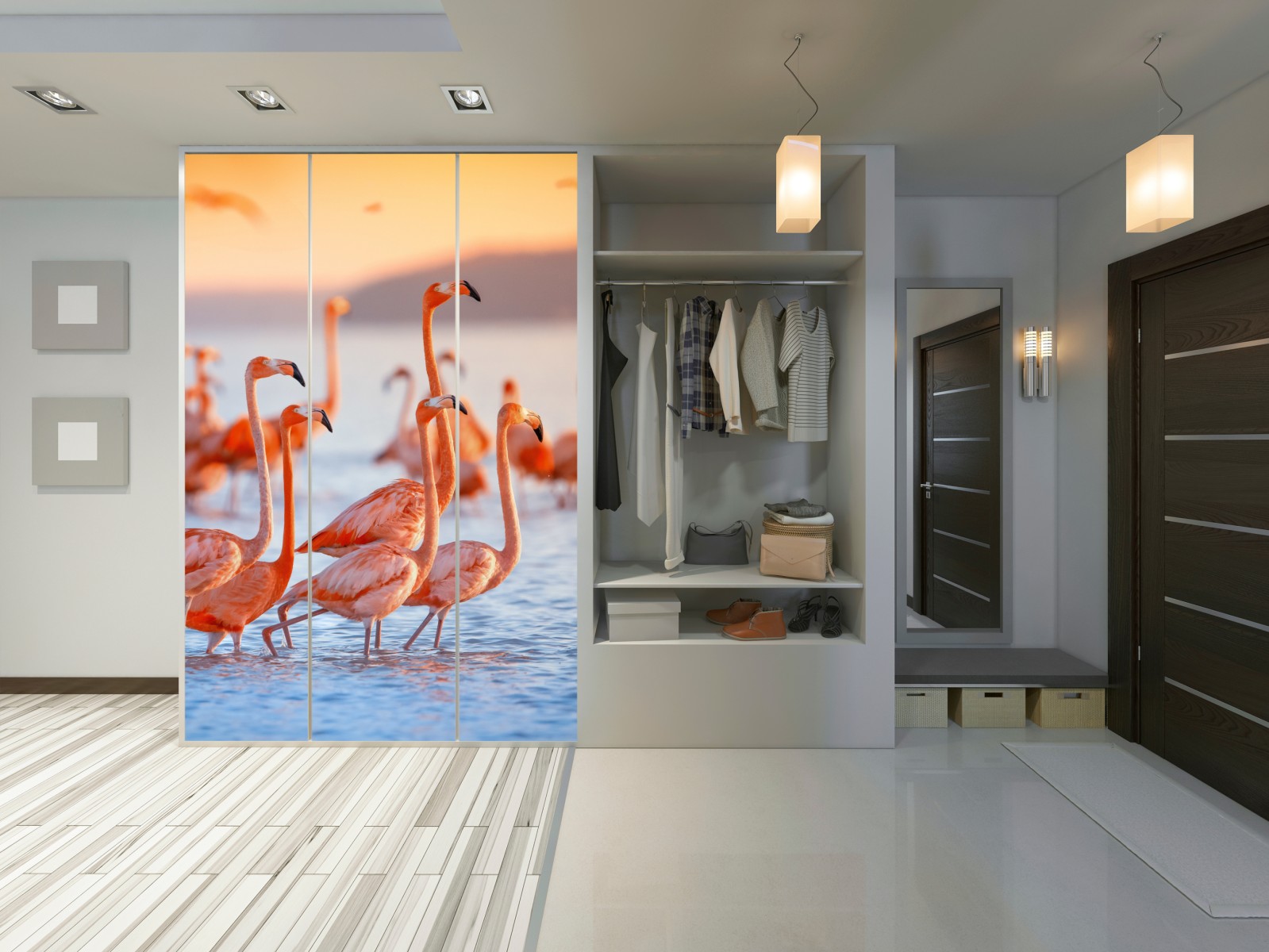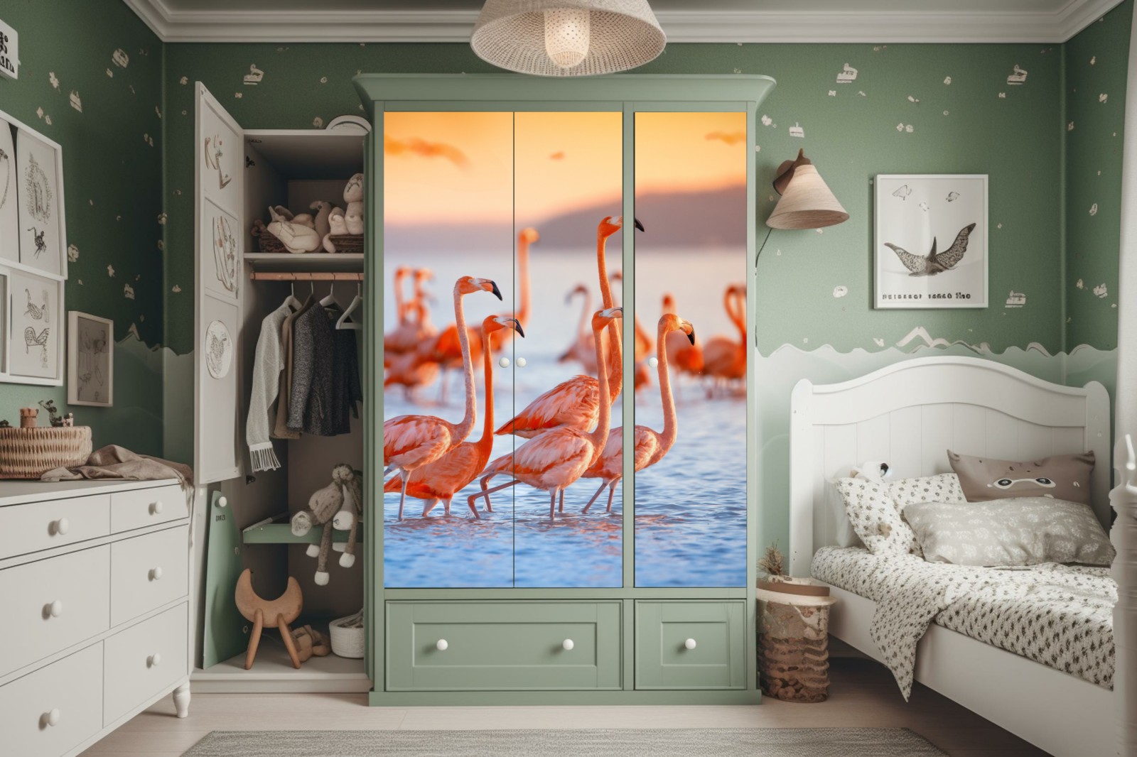 Schrankaufkleber rosa flamingos bei sonnenuntergang