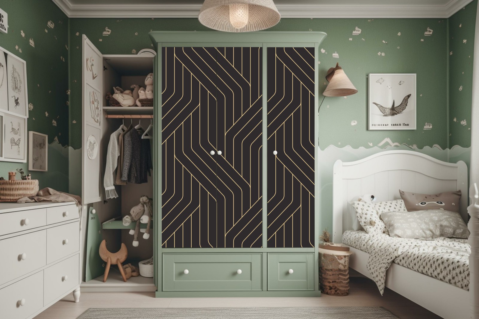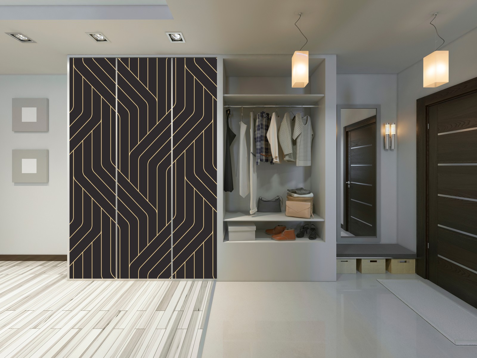 Schrankaufkleber geometrisches art deco muster in schwarz und gold