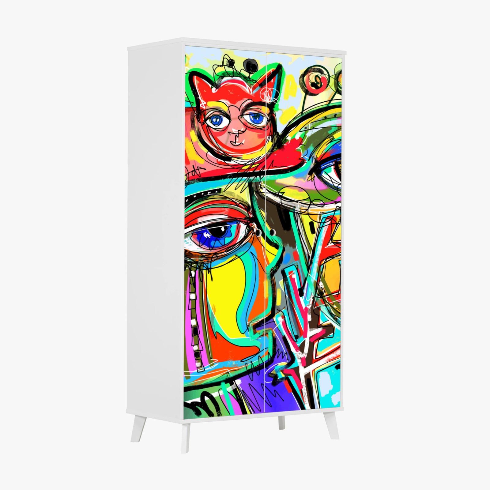 Schrankaufkleber Lebendige abstrakte gesichter mit katze und vogel