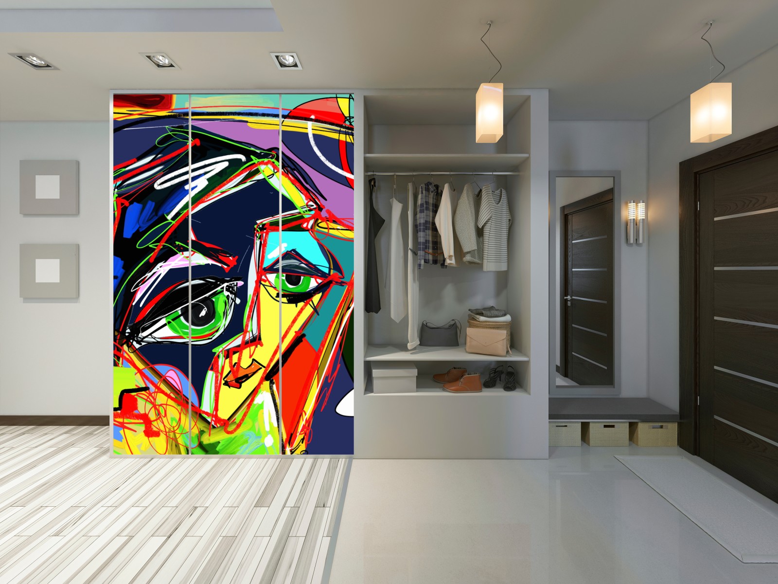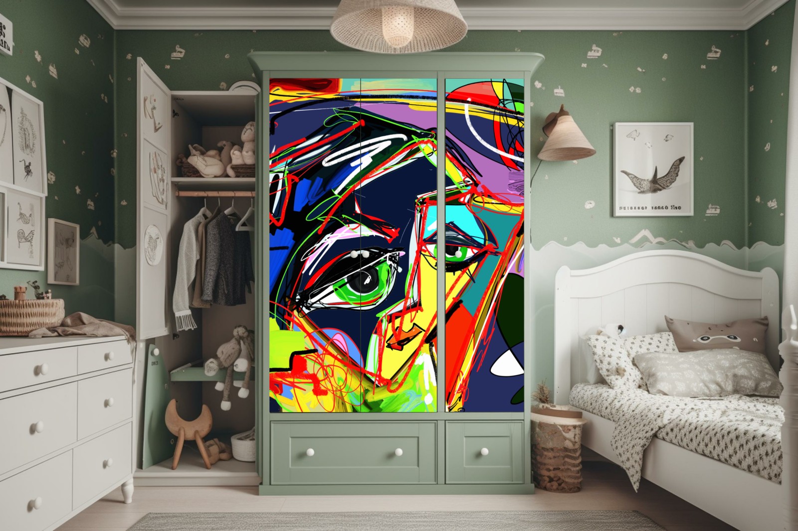 Schrankaufkleber farbenfrohes abstraktes gesichtsporträt