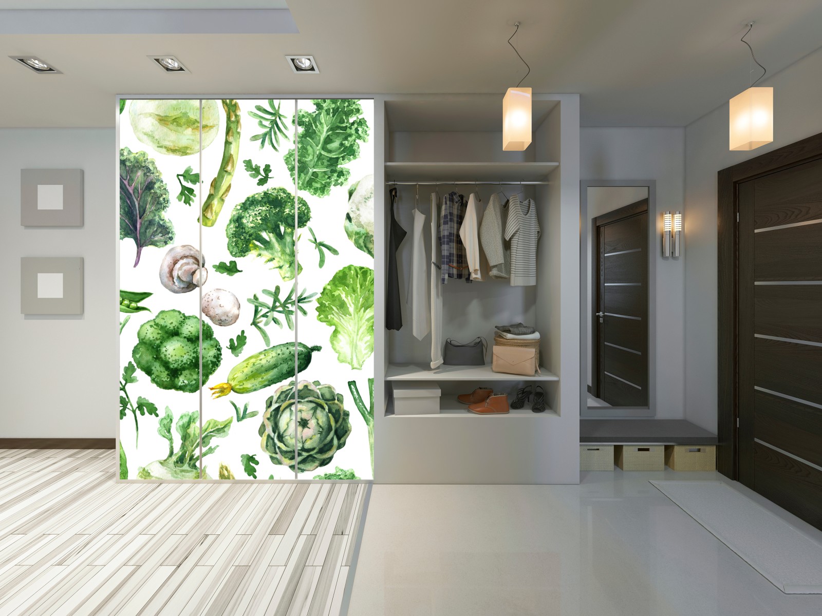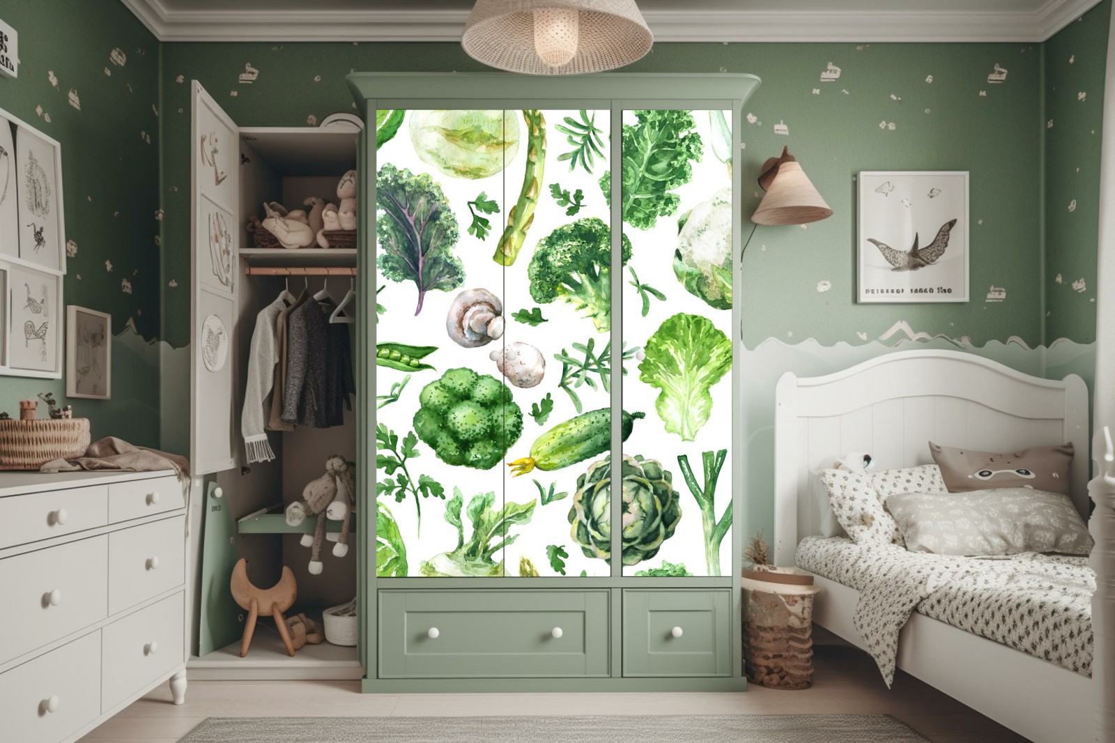 handgemaltes aquarellmuster mit grünen gemüsen ideal für küchen- und naturinspirierte räume.