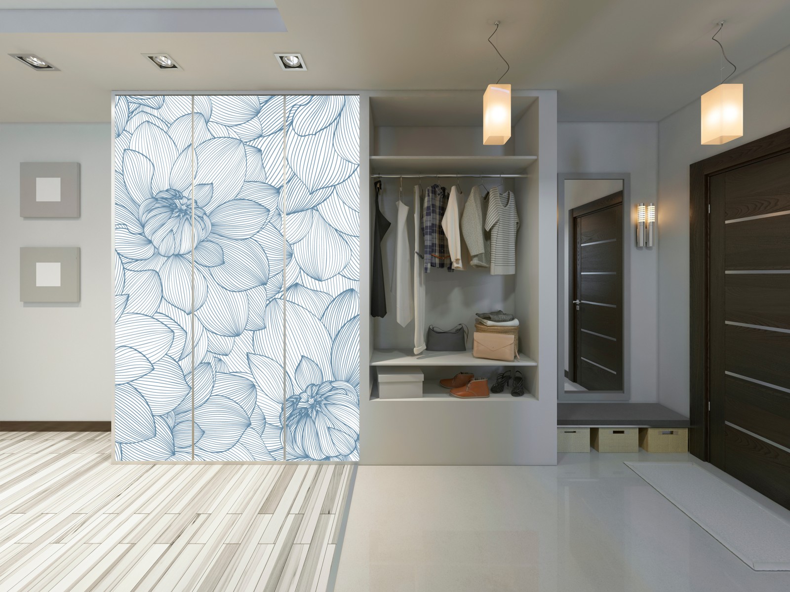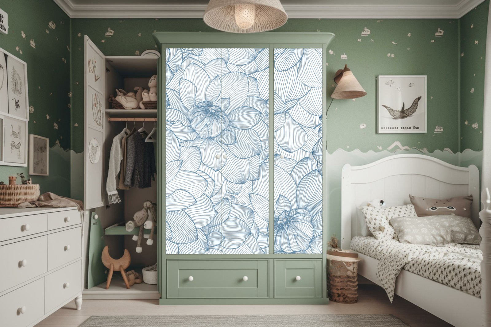 Schrankaufkleber zartes blaues blumenlinienmuster