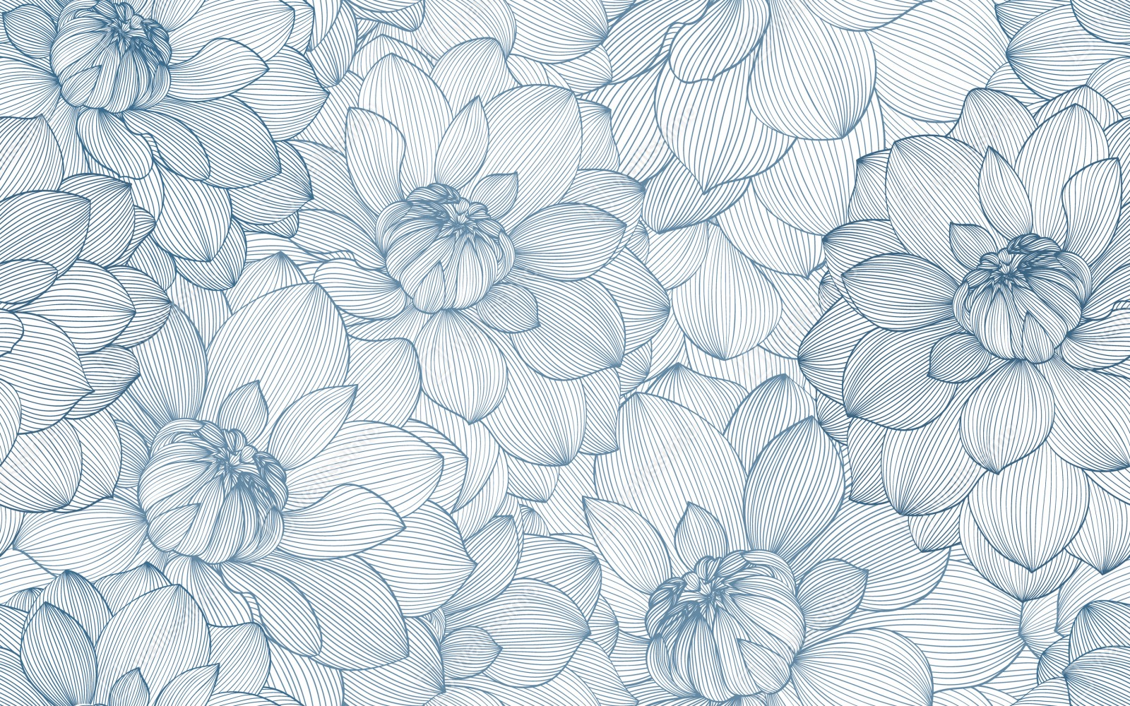 Zart gezeichnete Blumenlinien in sanftem Blau schaffen einen beruhigenden, modernen Akzent für Schlafzimmer und Wohnzimmer.