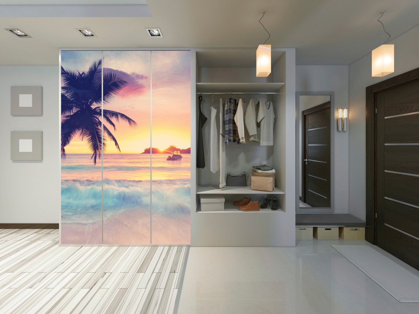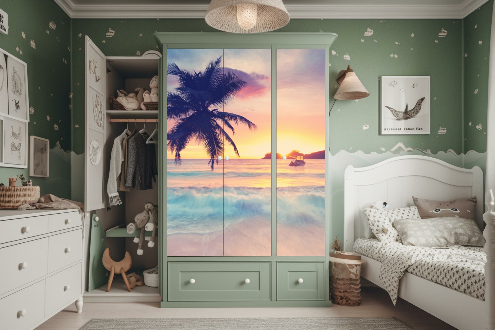 Schrankaufkleber tropischer pastellsonnenuntergang am meer