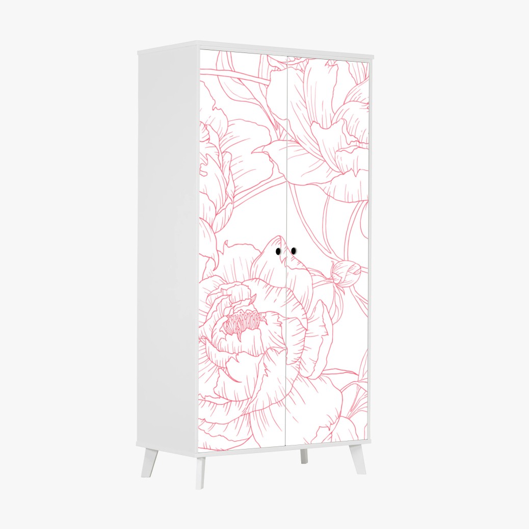 Schrankaufkleber Zartes rosa paeonien-line-art-muster
