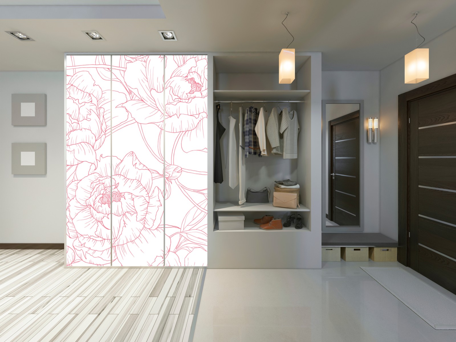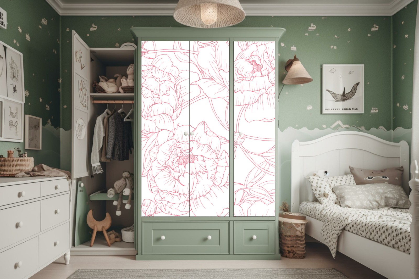 Schrankaufkleber zartes rosa paeonien-line-art-muster