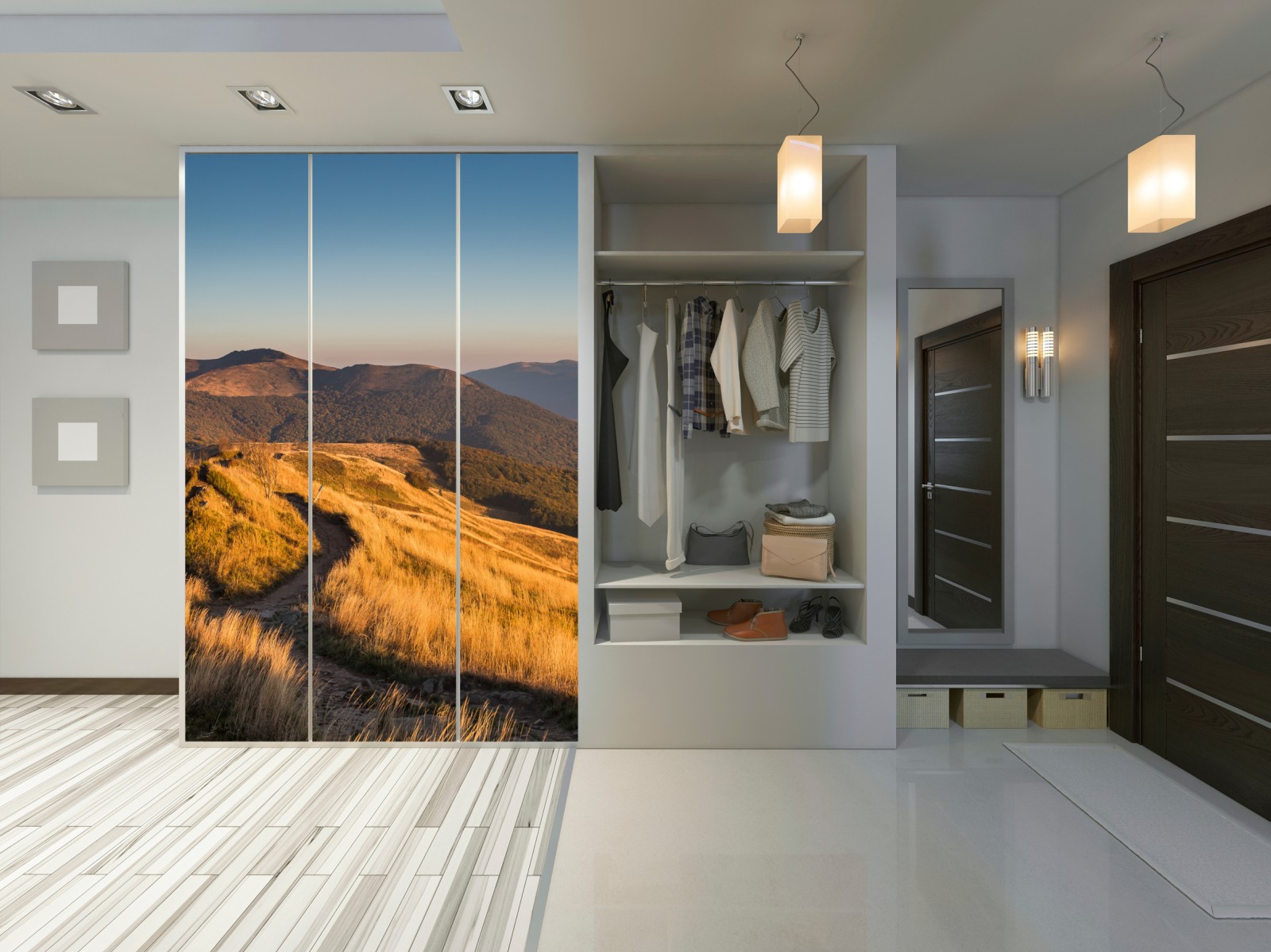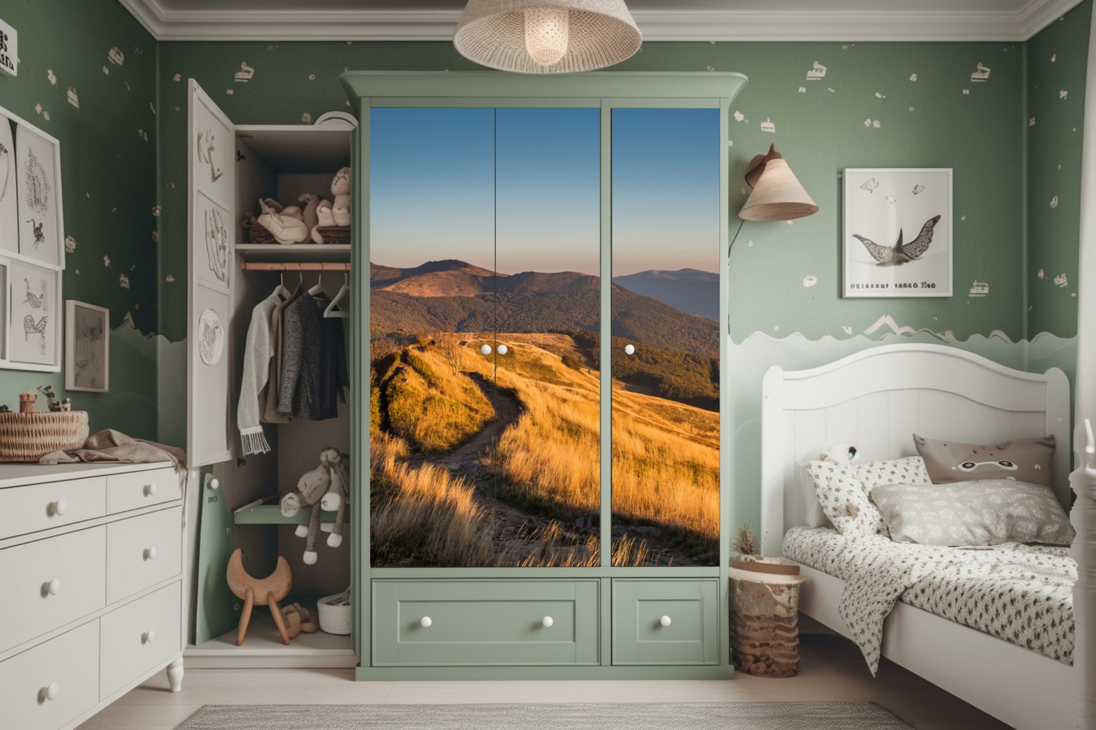 Schrankaufkleber goldener bergrücken bei sonnenuntergang