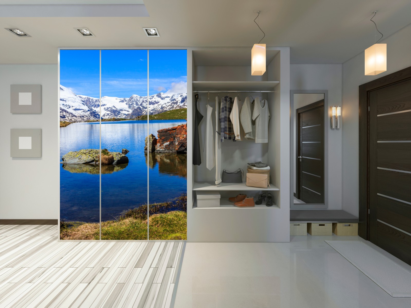 Atemberaubende Panoramaaufnahme des Matterhorns, das sich im ruhigen Wasser des Stellisee spiegelt, ideal, um alpine Ruhe in jeden Raum zu bringen.