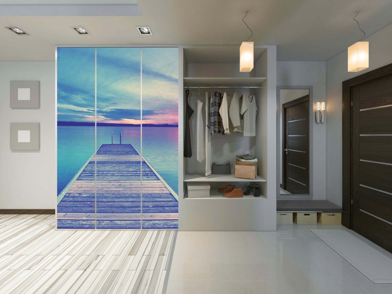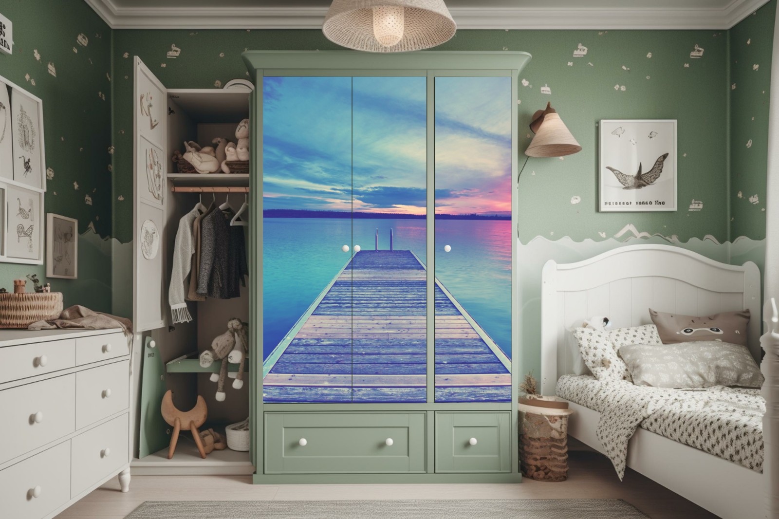 Schrankaufkleber pastellsteg am see bei sonnenuntergang