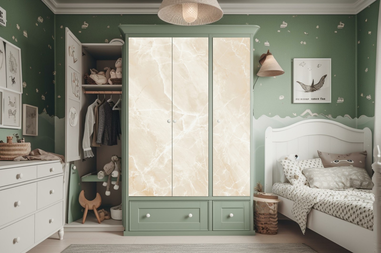 Schrankaufkleber beige marmorstruktur mit weißen adern