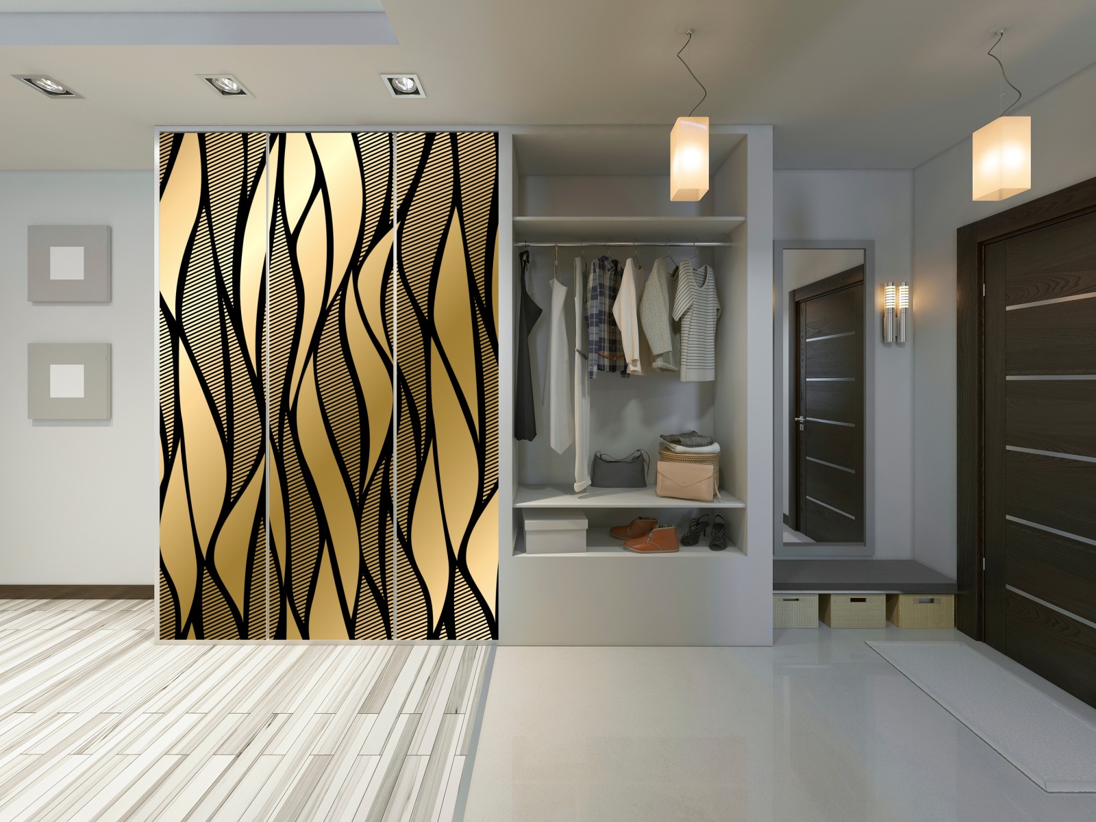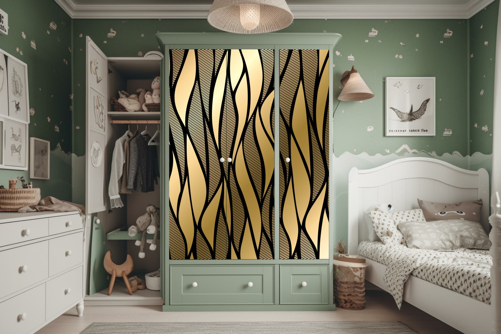 Schrankaufkleber luxuriöses goldenes abstraktes wellenmuster
