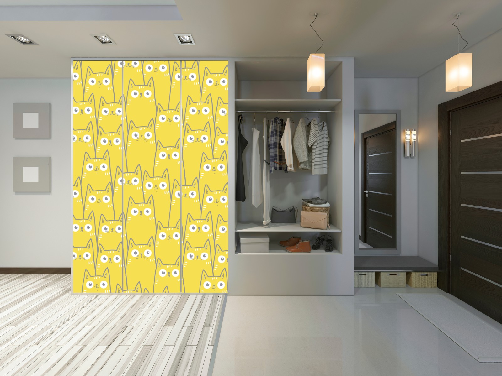 Schrankaufkleber fröhliches gelbes katzenmuster