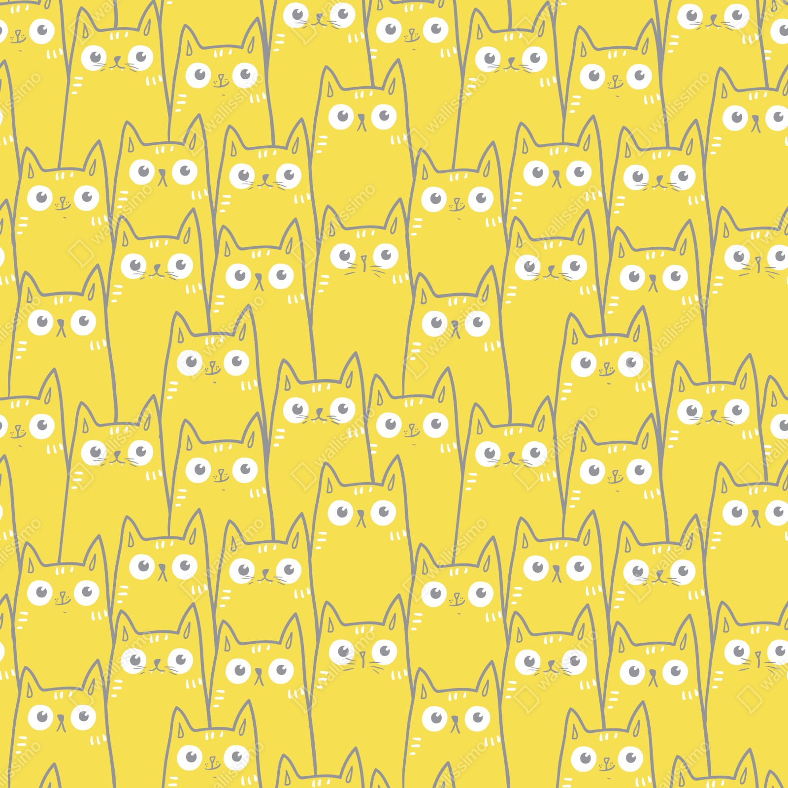 Helles und verspieltes wiederholendes Katzenmuster in fröhlichem Gelb, ideal zur Verschönerung von Kinderzimmern und modernen Wohnräumen.