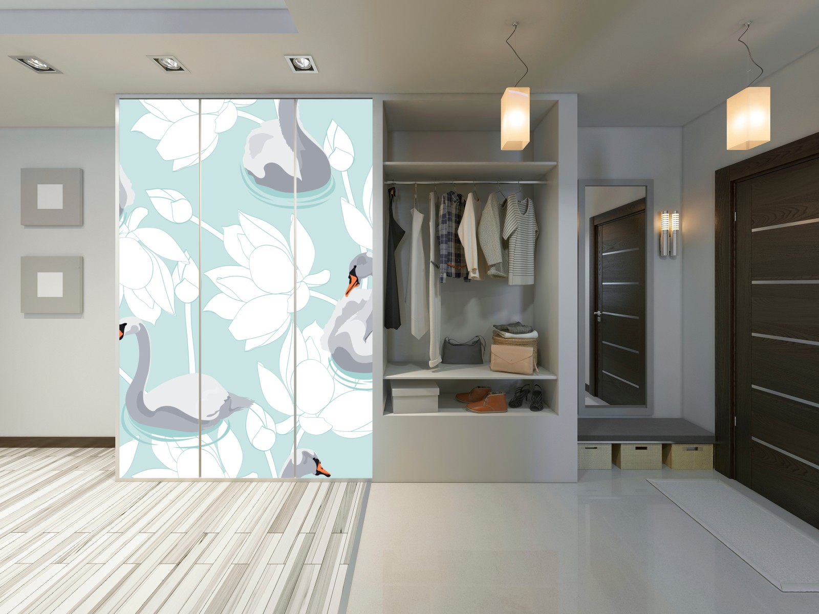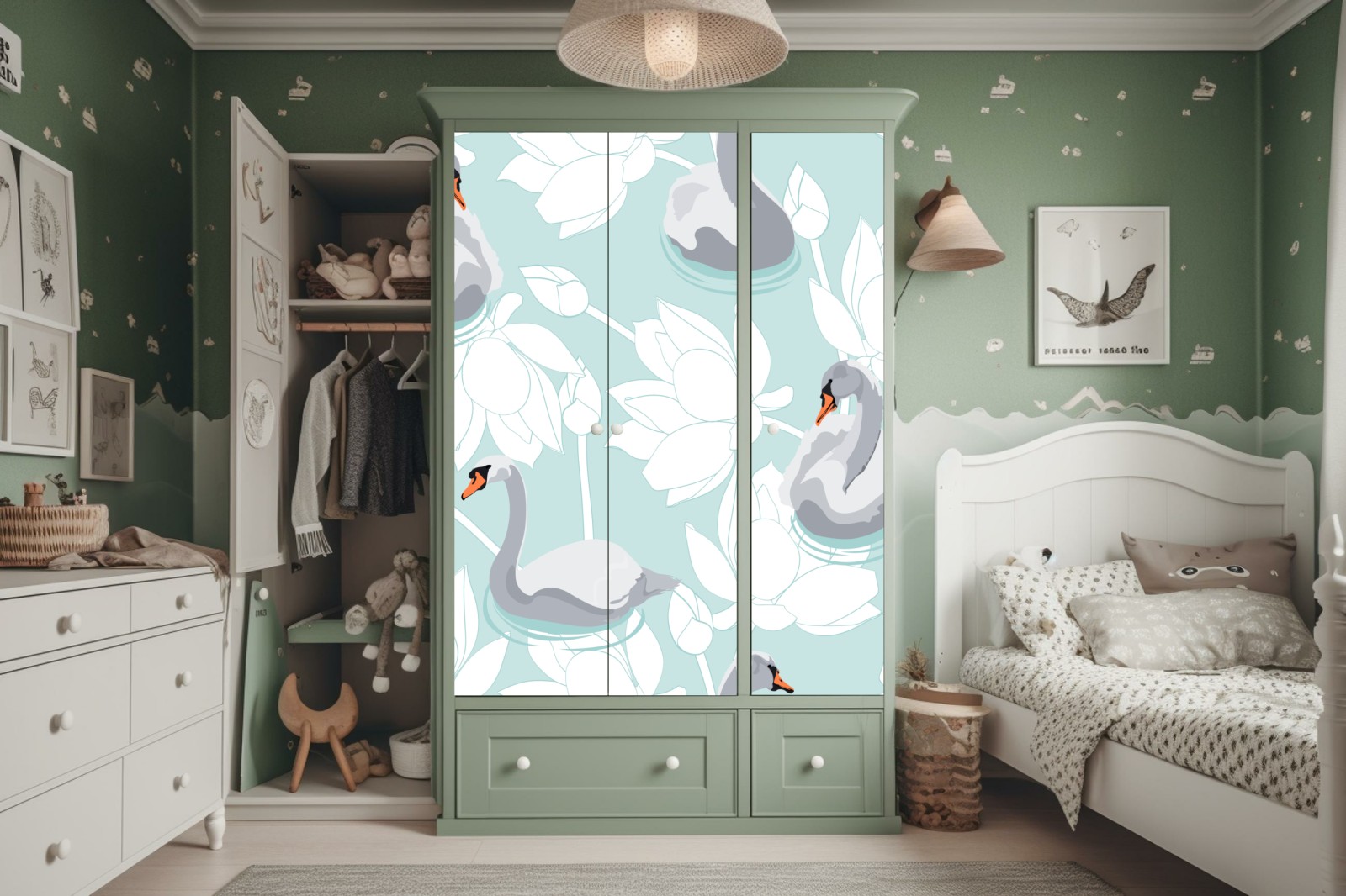 Schrankaufkleber sanfte schwäne und lotusblumen