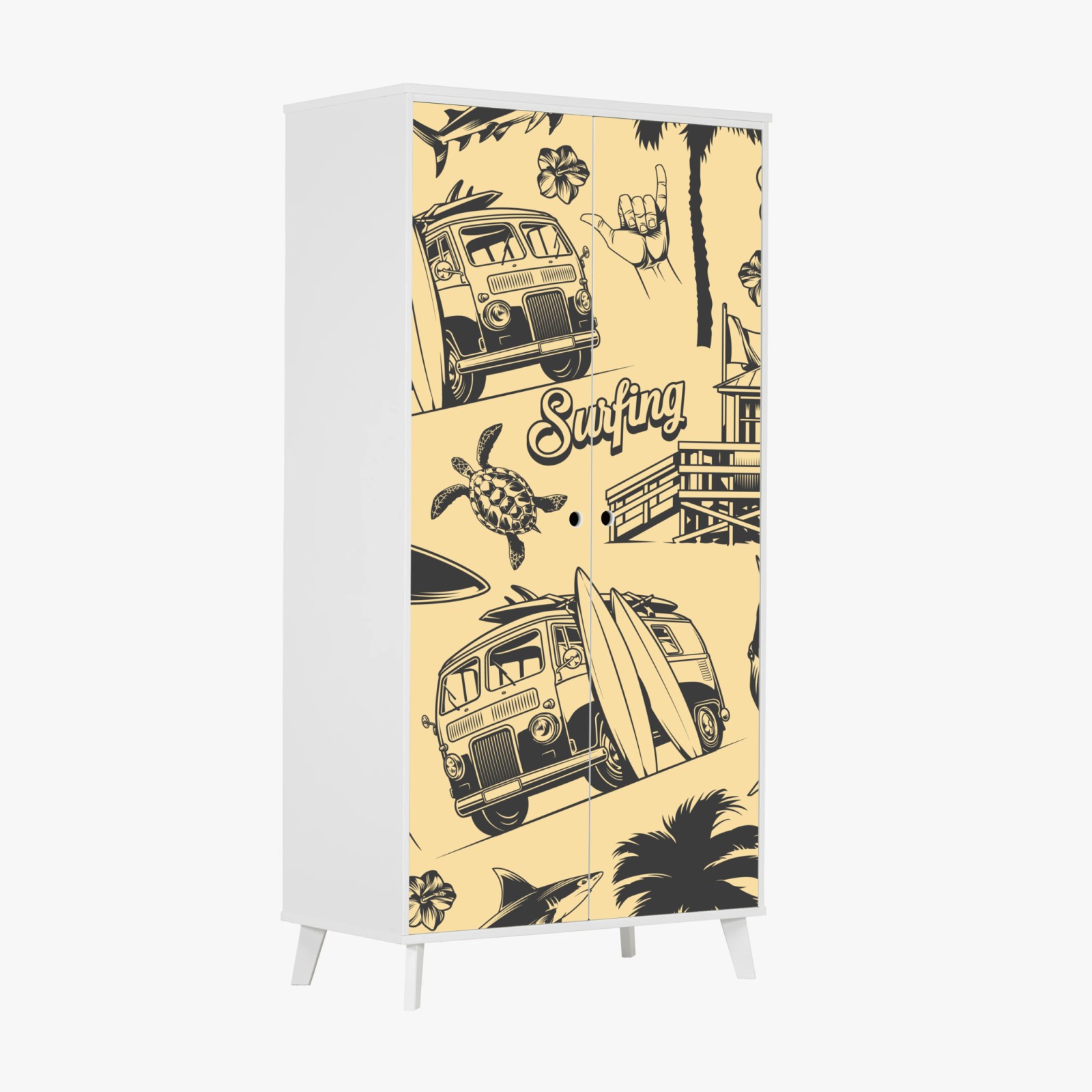 Schrankaufkleber Retro surfing muster mit campingbus und wellen