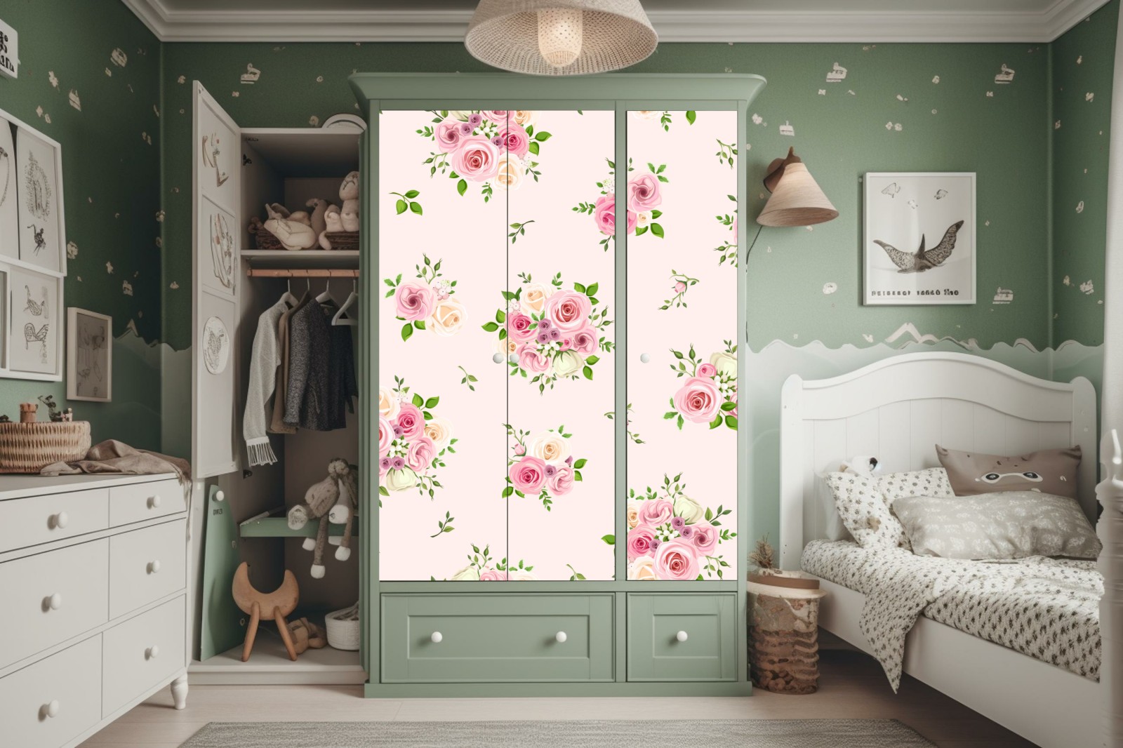 Schrankaufkleber zartes rosenmuster in pastellrosa