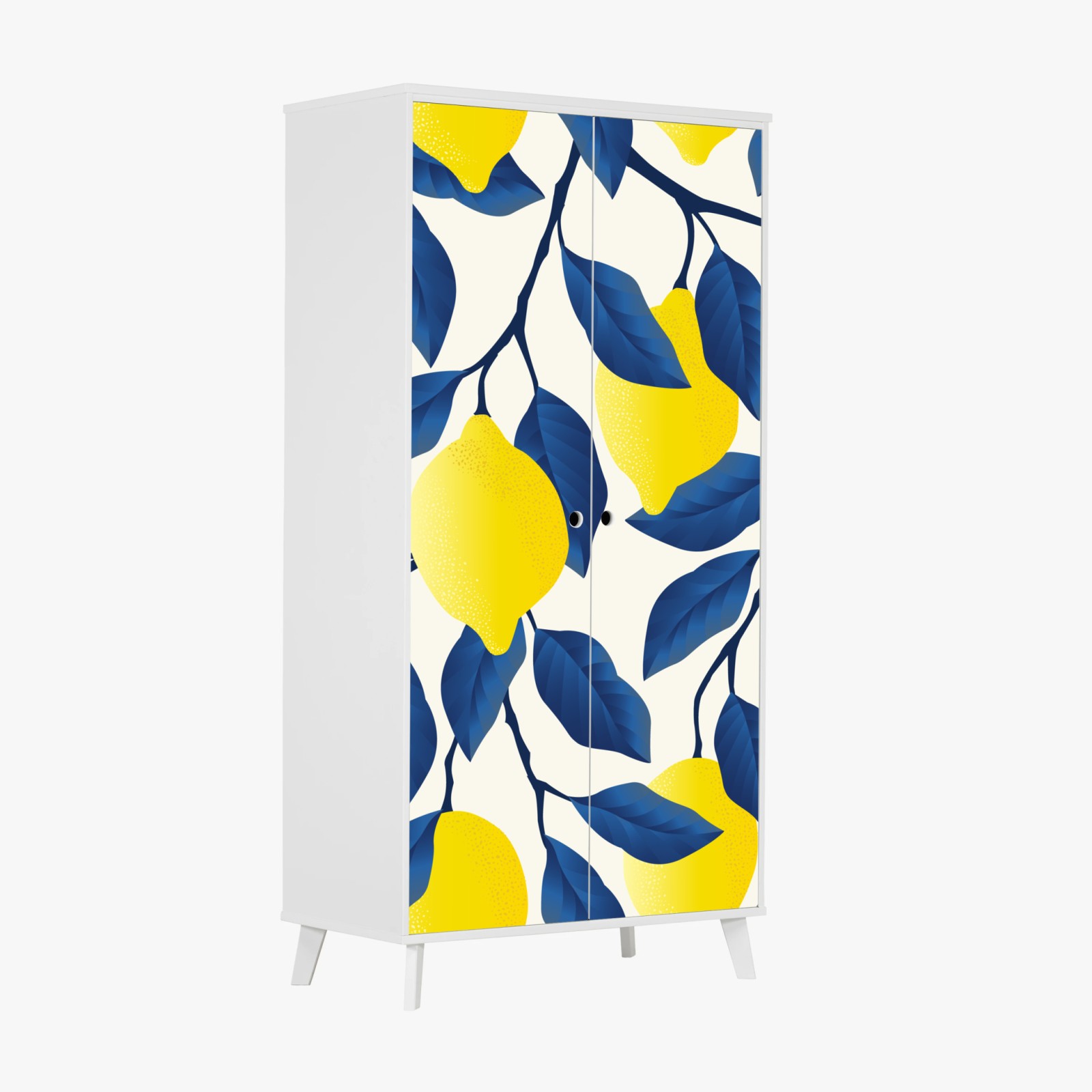 Schrankaufkleber Lebhaftes zitronenmuster mit blauen blättern