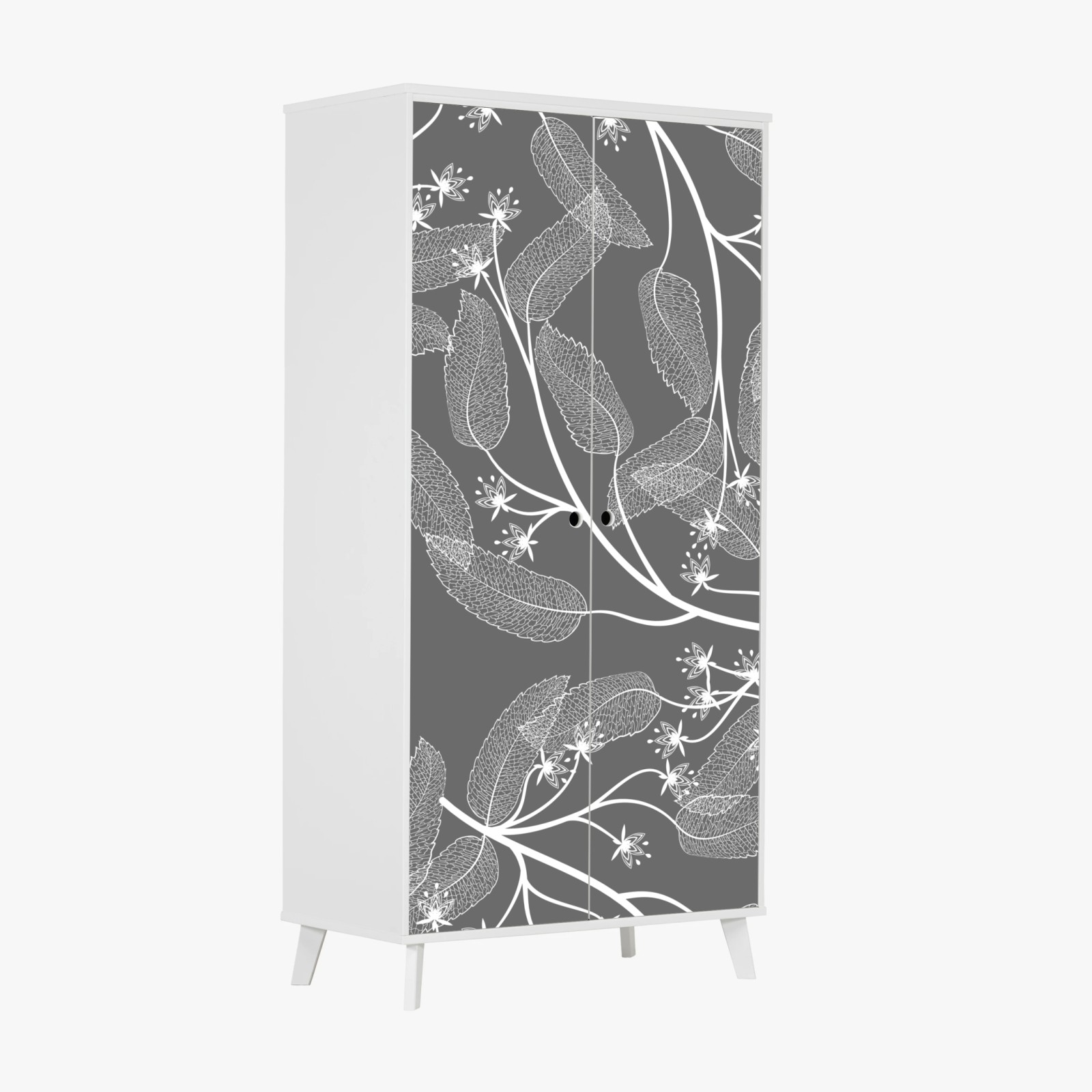 Schrankaufkleber Zarte weiße blätter auf grauem hintergrund