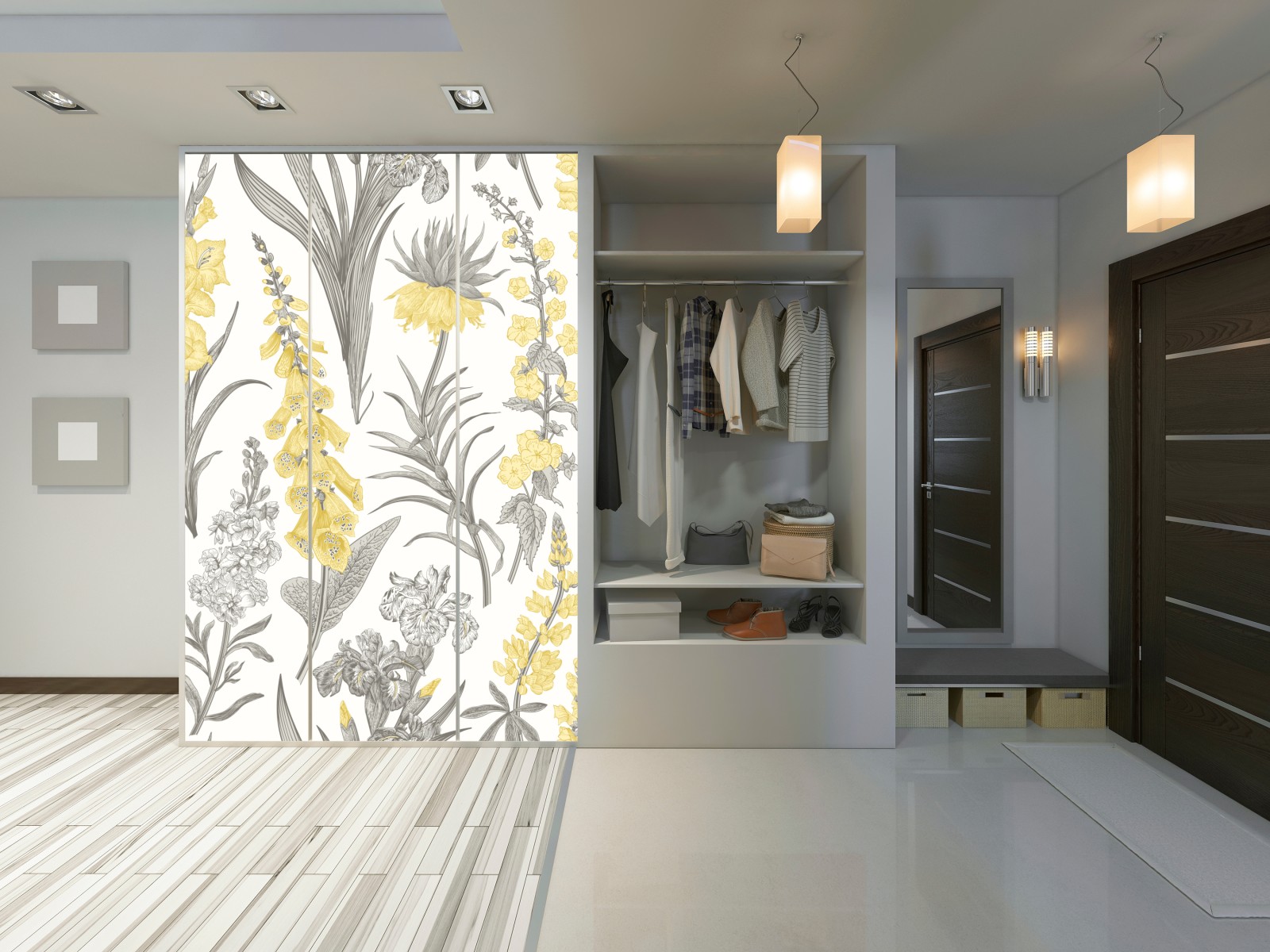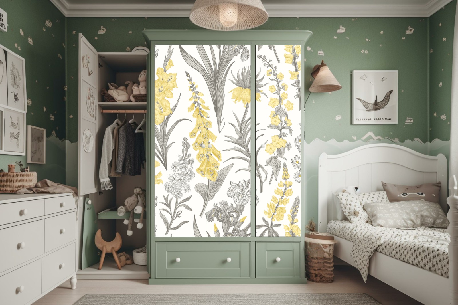 Schrankaufkleber vintage botanisches blumenmuster in gelb und grau