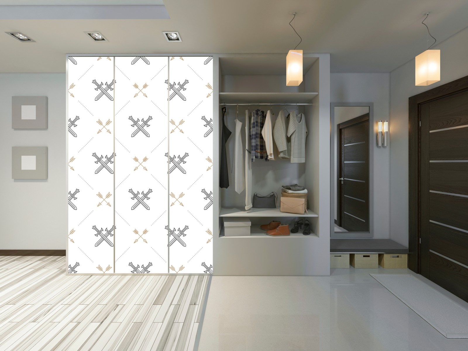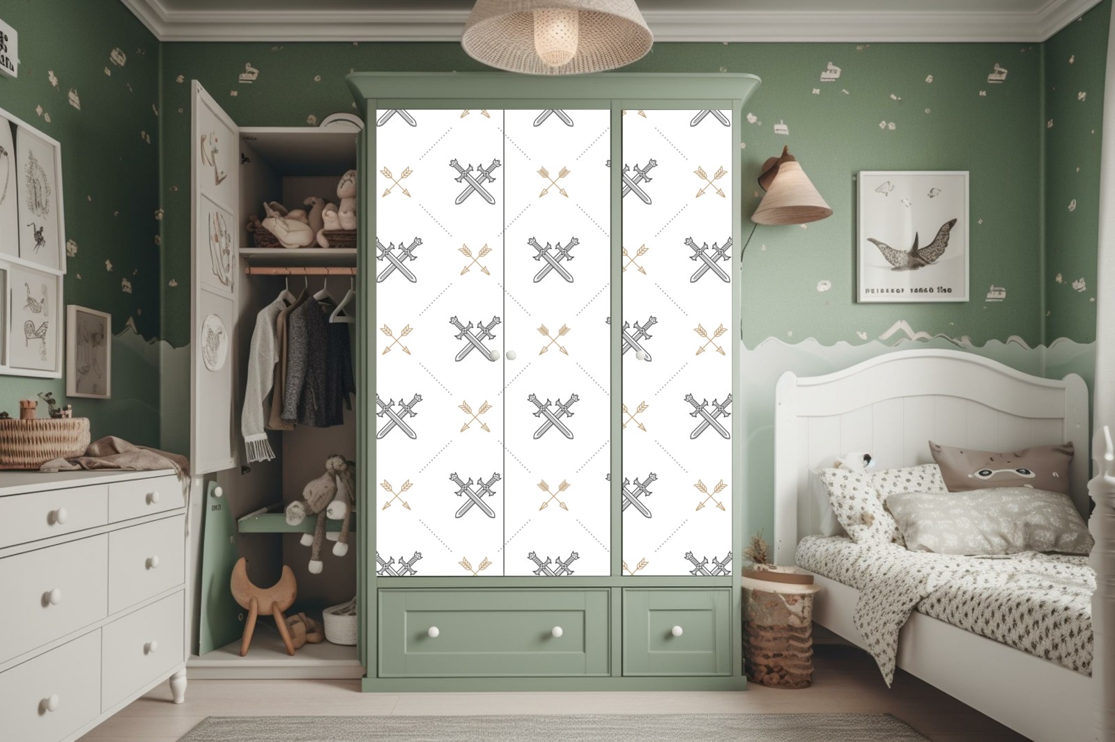Schrankaufkleber muster mit gekreuzten schwertern und pfeilen