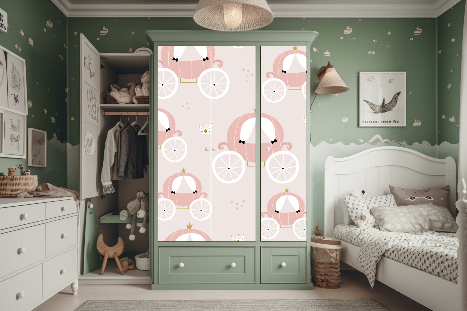 Schrankaufkleber rosa prinzessinnenkutsche muster