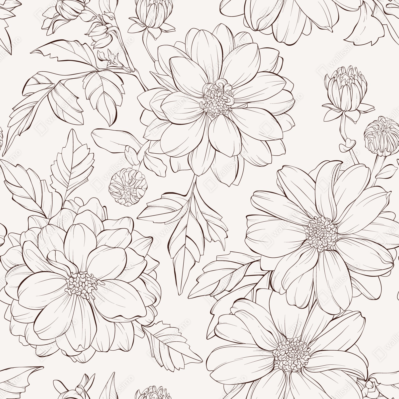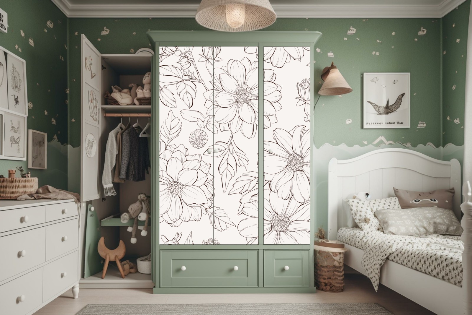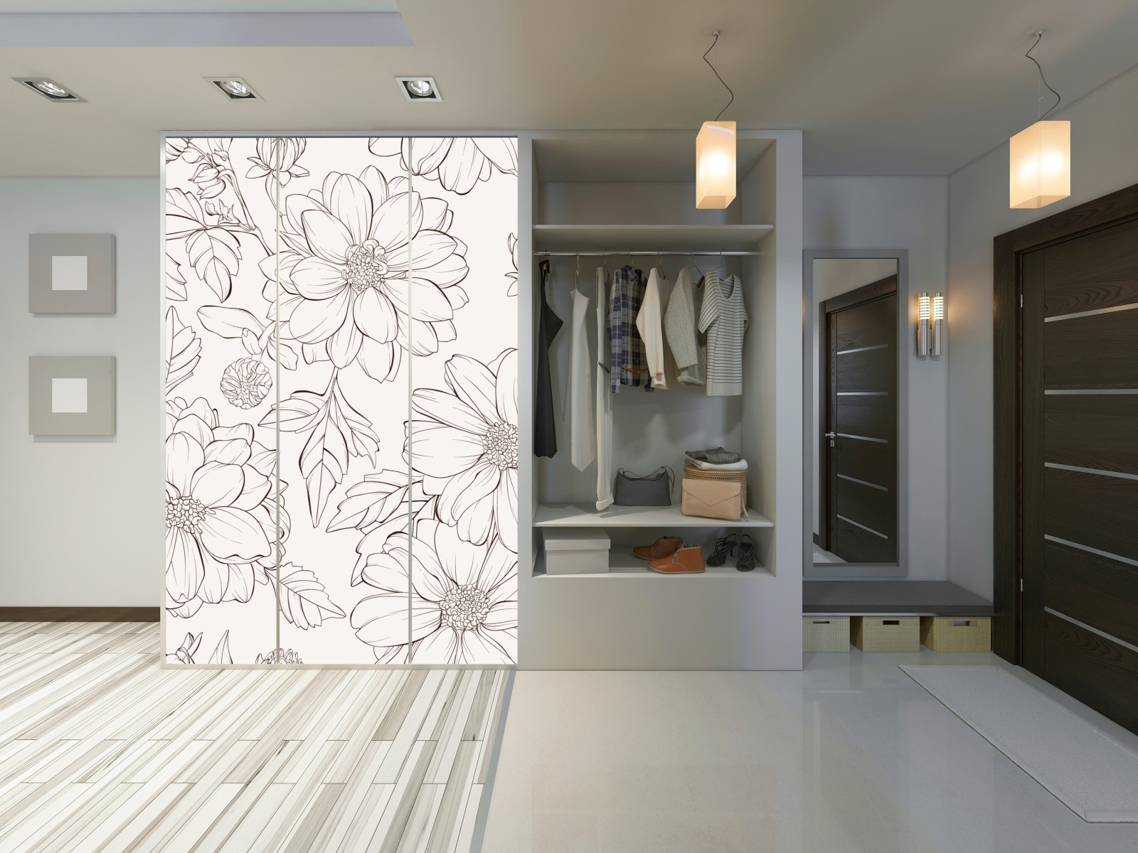Elegante handgezeichnete Blumenlinien in sanften, neutralen Tönen verleihen jedem Raum eine ruhige, botanische Atmosphäre.