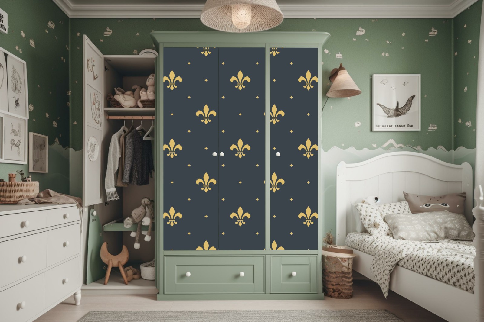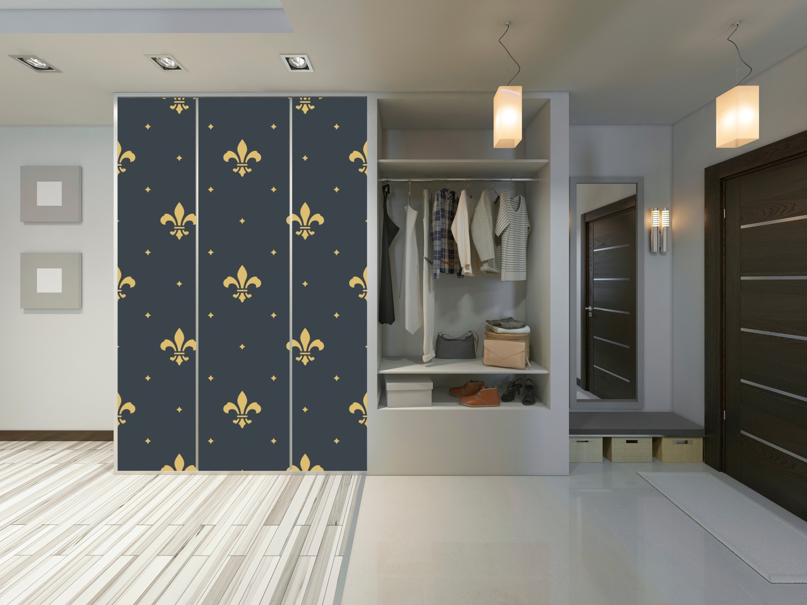 Schrankaufkleber goldenes lilienmuster auf dunklem hintergrund