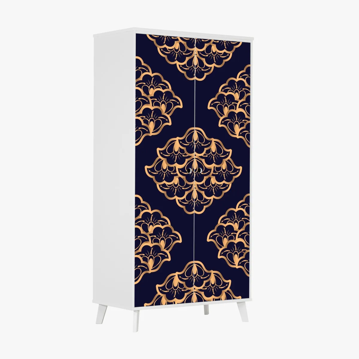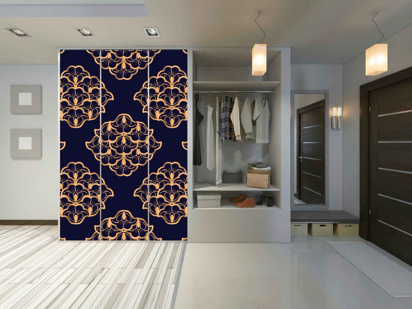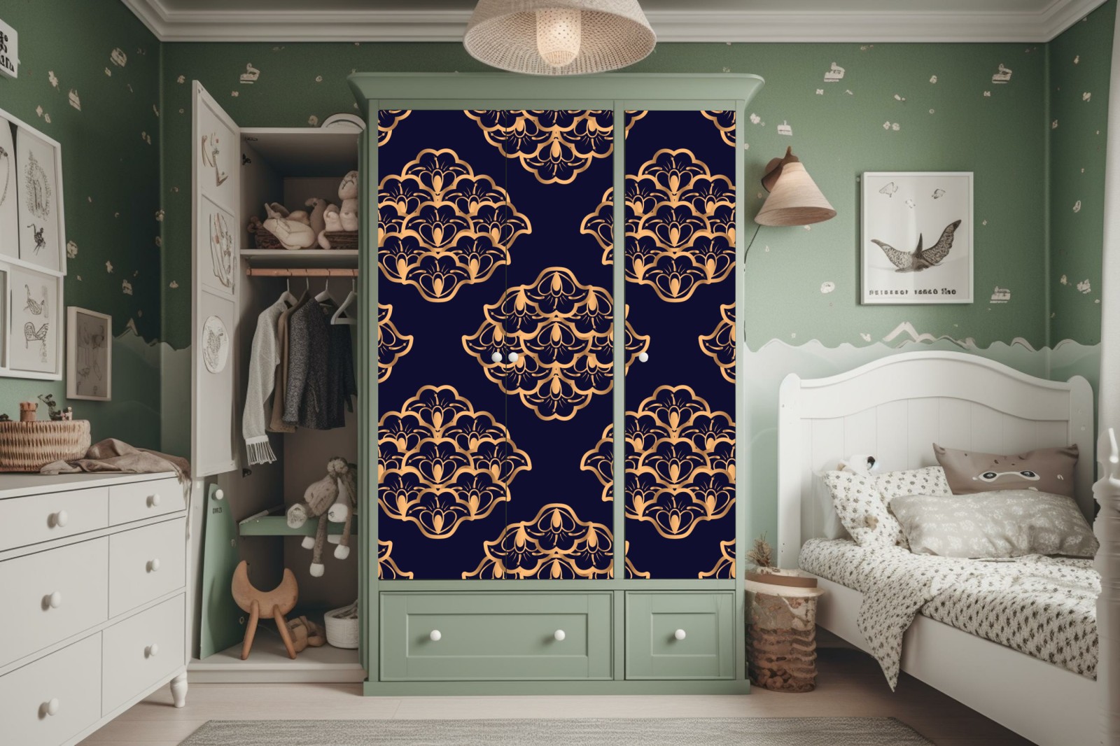 Schrankaufkleber goldenes damastmuster auf marineblauem hintergrund