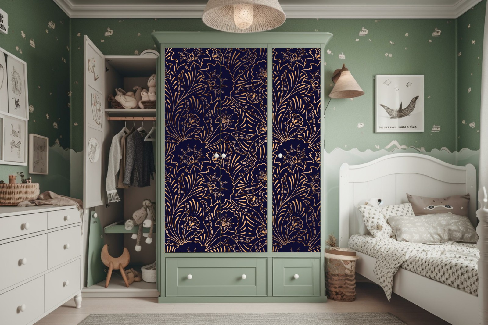 Schrankaufkleber goldenes blumenornament auf nachtblauem hintergrund