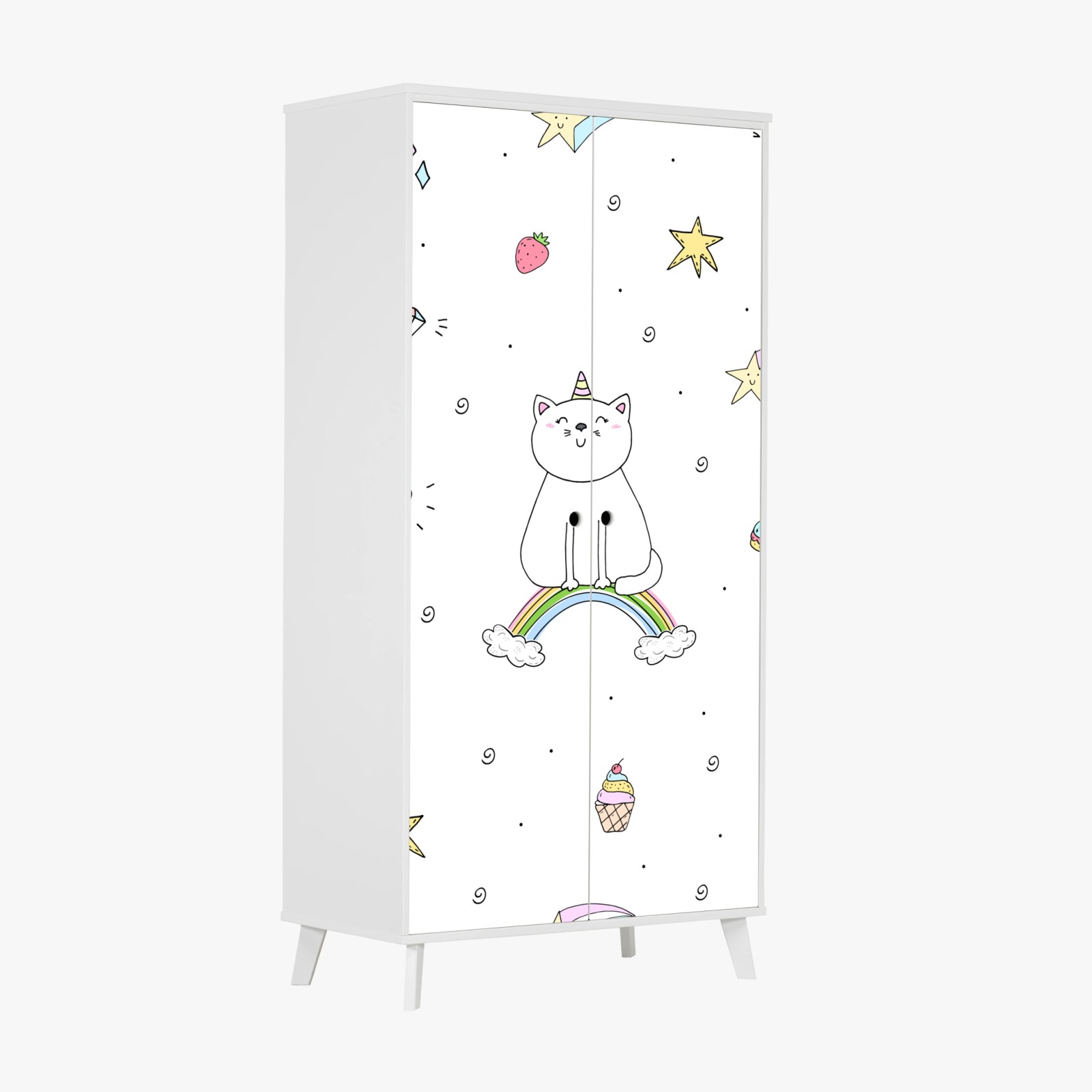 Schrankaufkleber Pastell-einhornkatze auf dem regenbogen