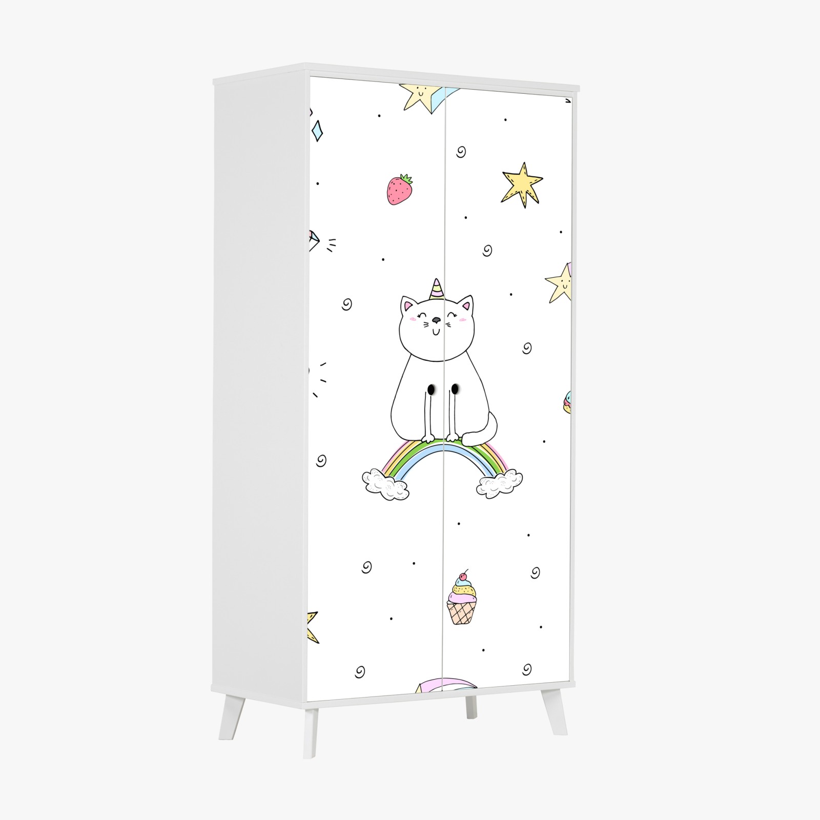 Schrankaufkleber pastell-einhornkatze auf dem regenbogen