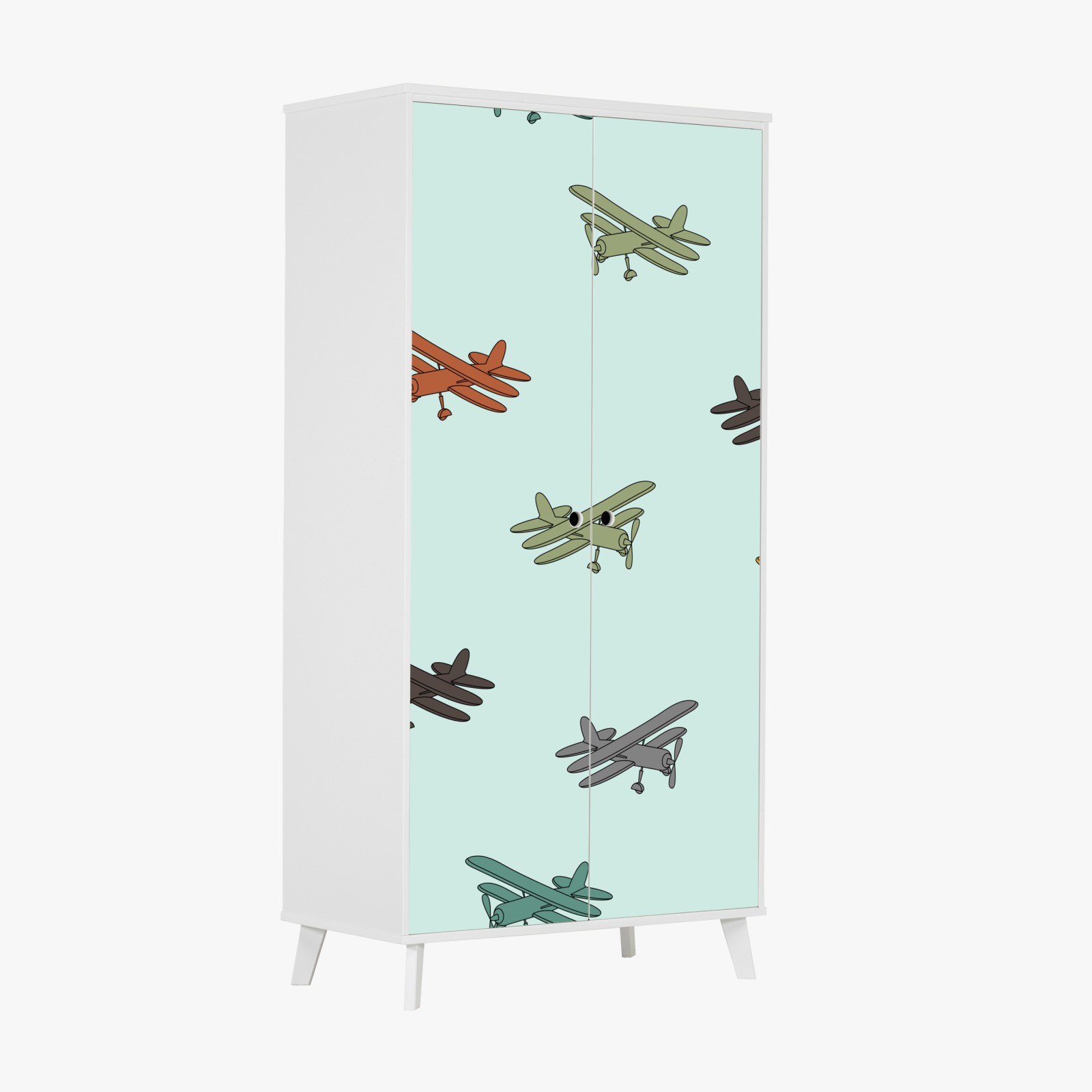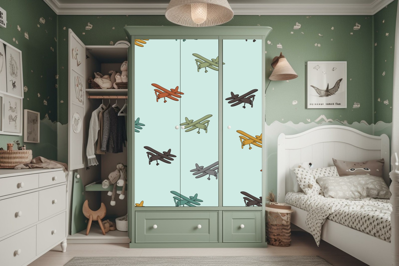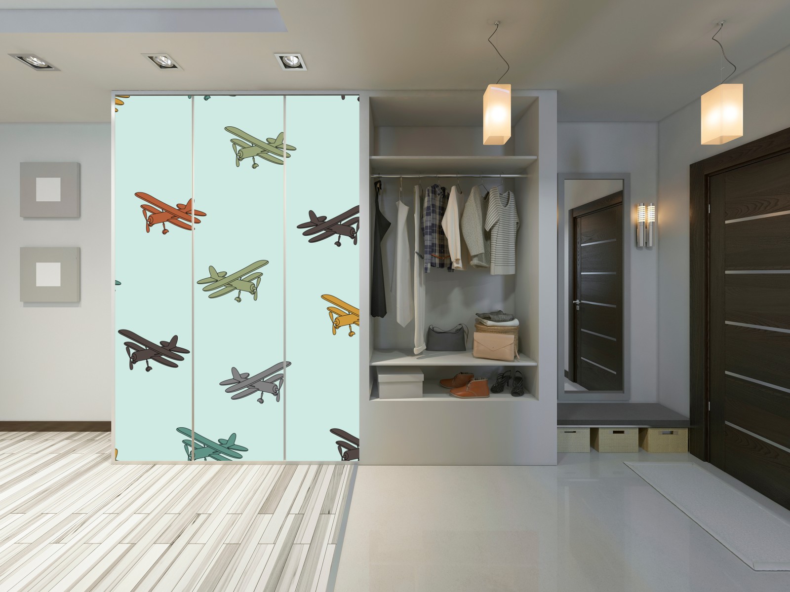 Schrankaufkleber muster mit doppeldeckern auf türkisgrund