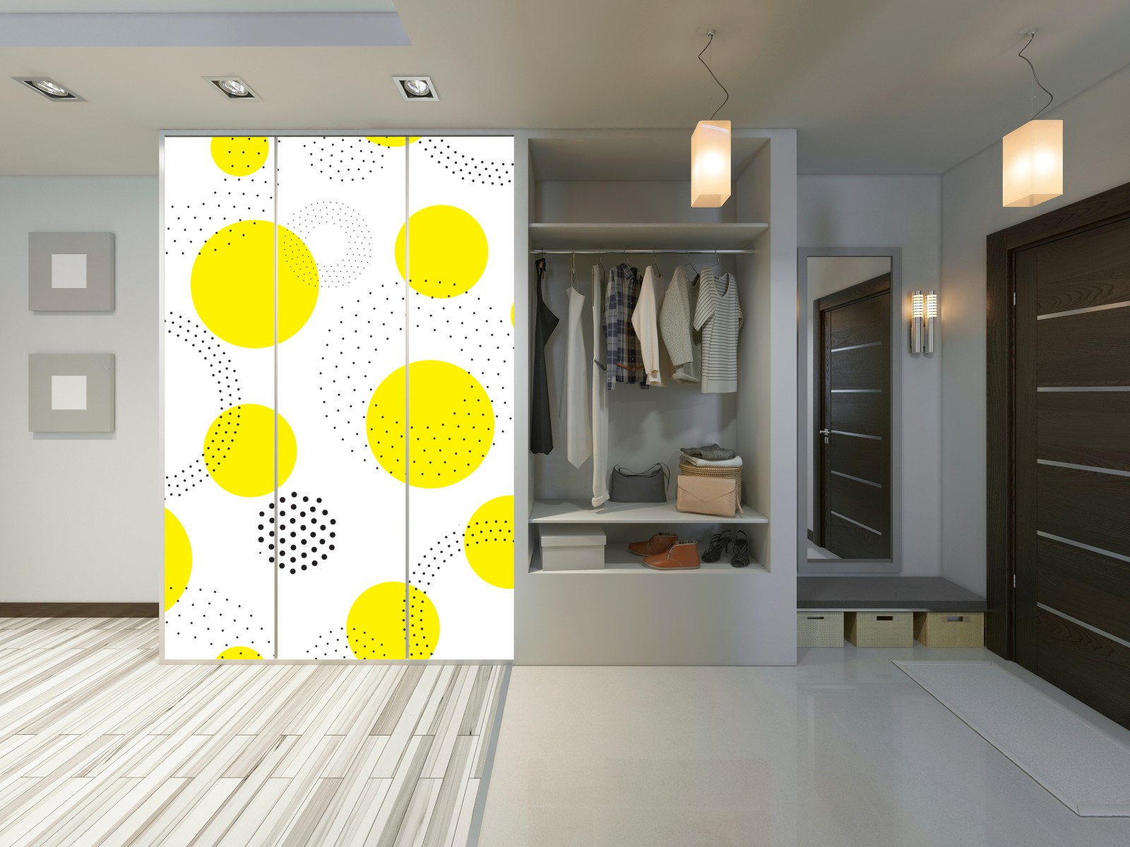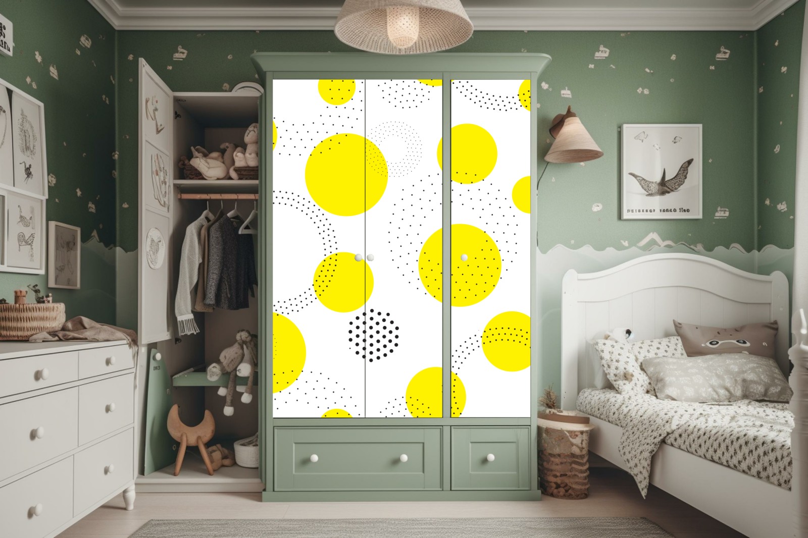 Schrankaufkleber leuchtendes gelbes punktemuster für kinderzimmer