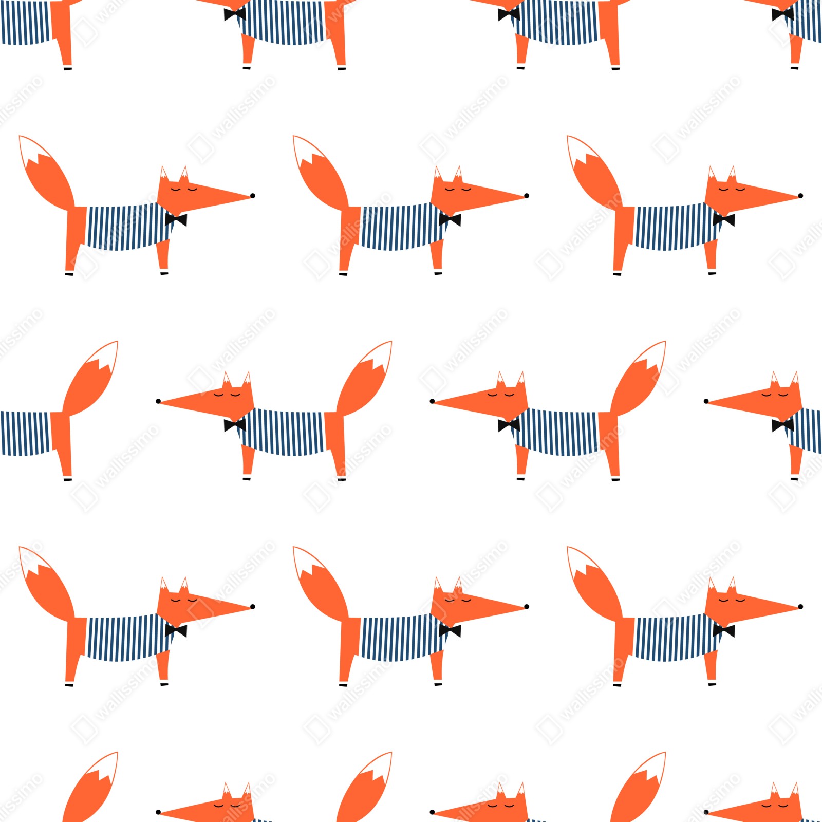 Verspieltes gestreiftes Fuchsmuster in kräftigem Orange und Navy auf weißem Hintergrund, ideal für Kinderzimmer.