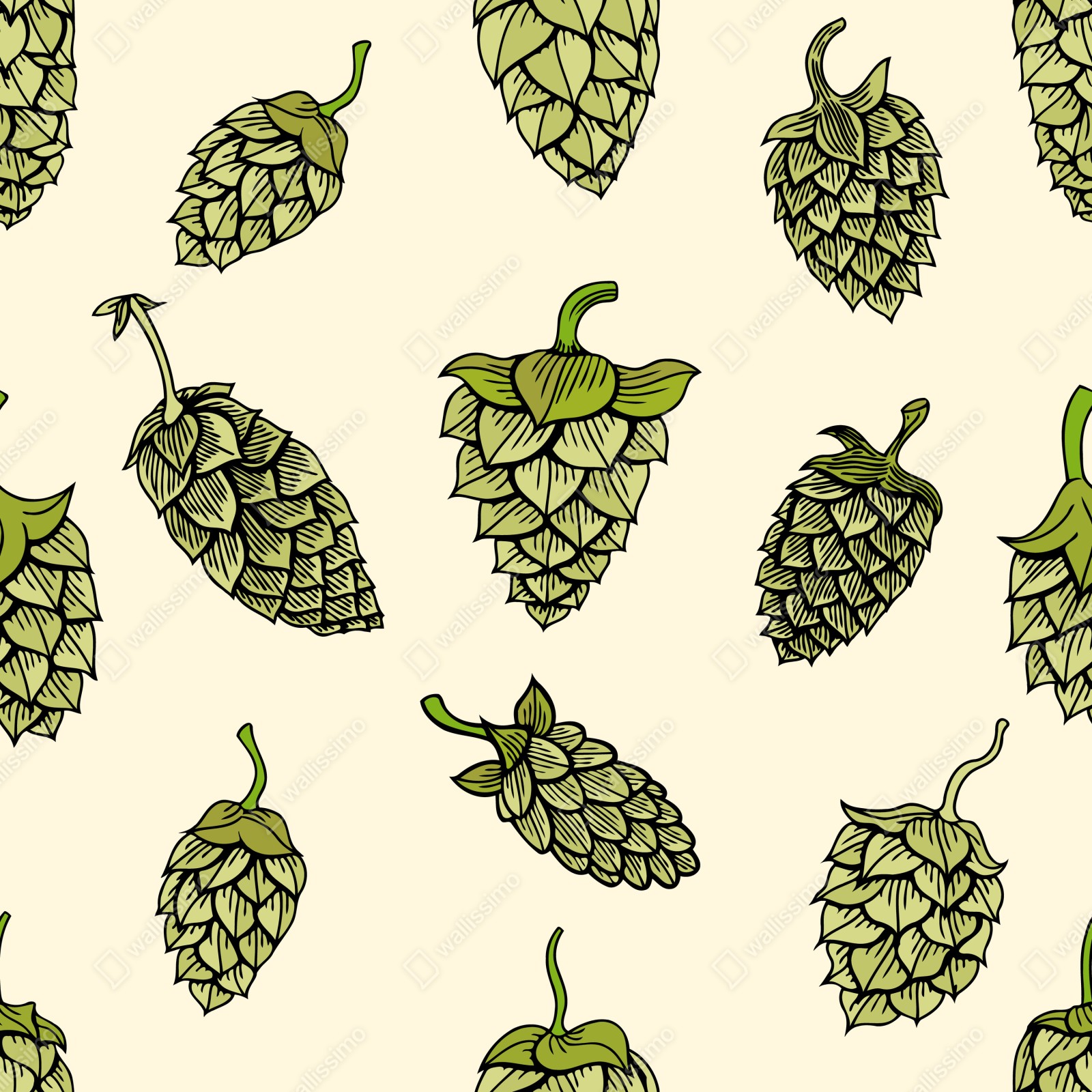 Dekoratives, handgezeichnetes Hopfenmuster verleiht Küche und Esszimmer rustikalen, botanischen Charme und ist ideal für Bierliebhaber.