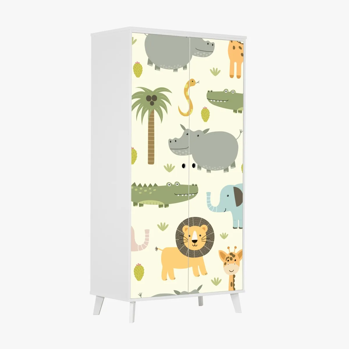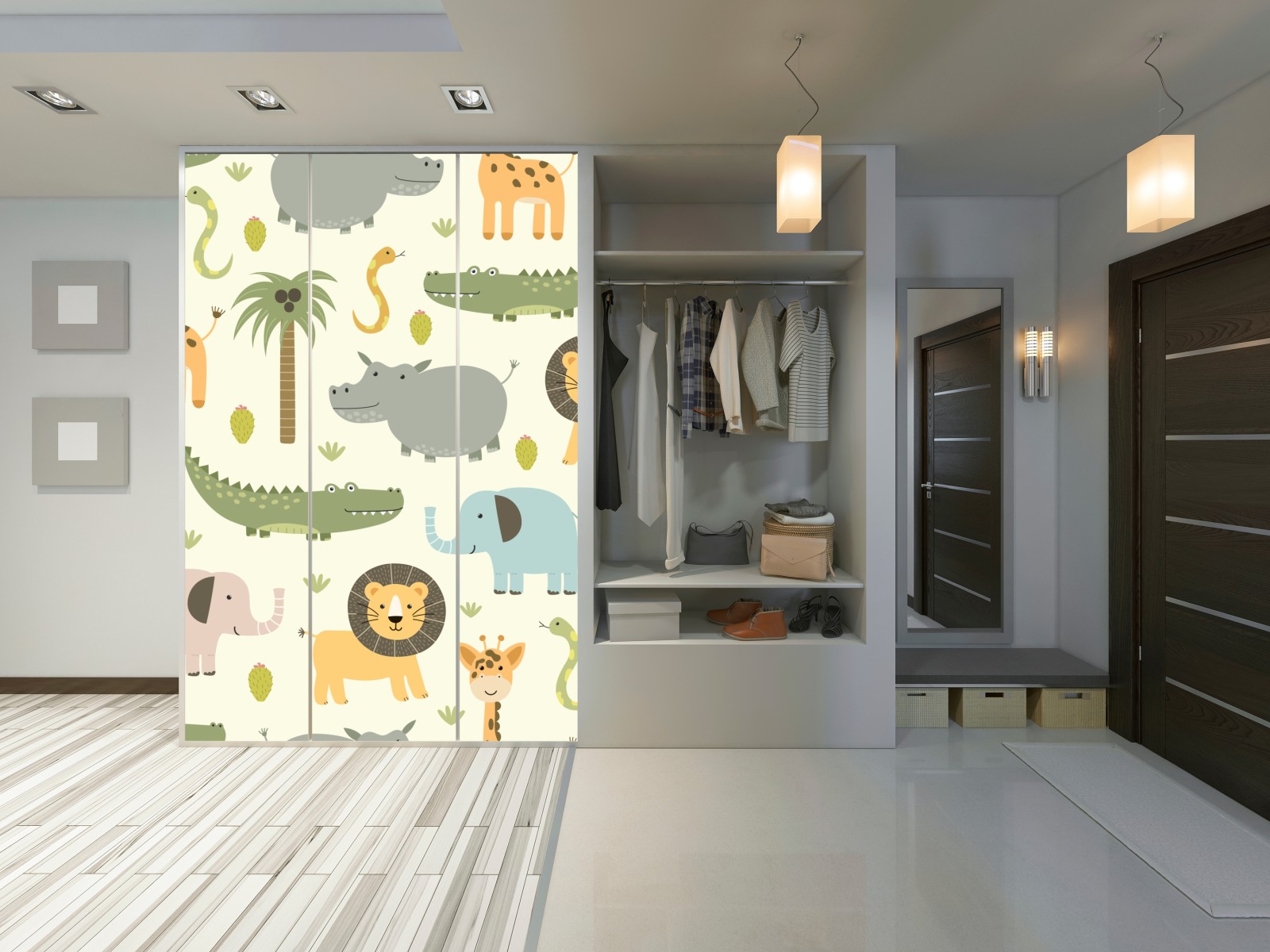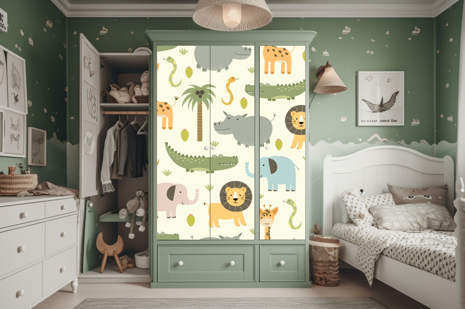 niedliches pastell-safari-tiermuster verleiht kinderzimmern eine verspielte und beruhigende atmosphäre mit freundlichen elefanten, löwen, giraffen und krokodilen.