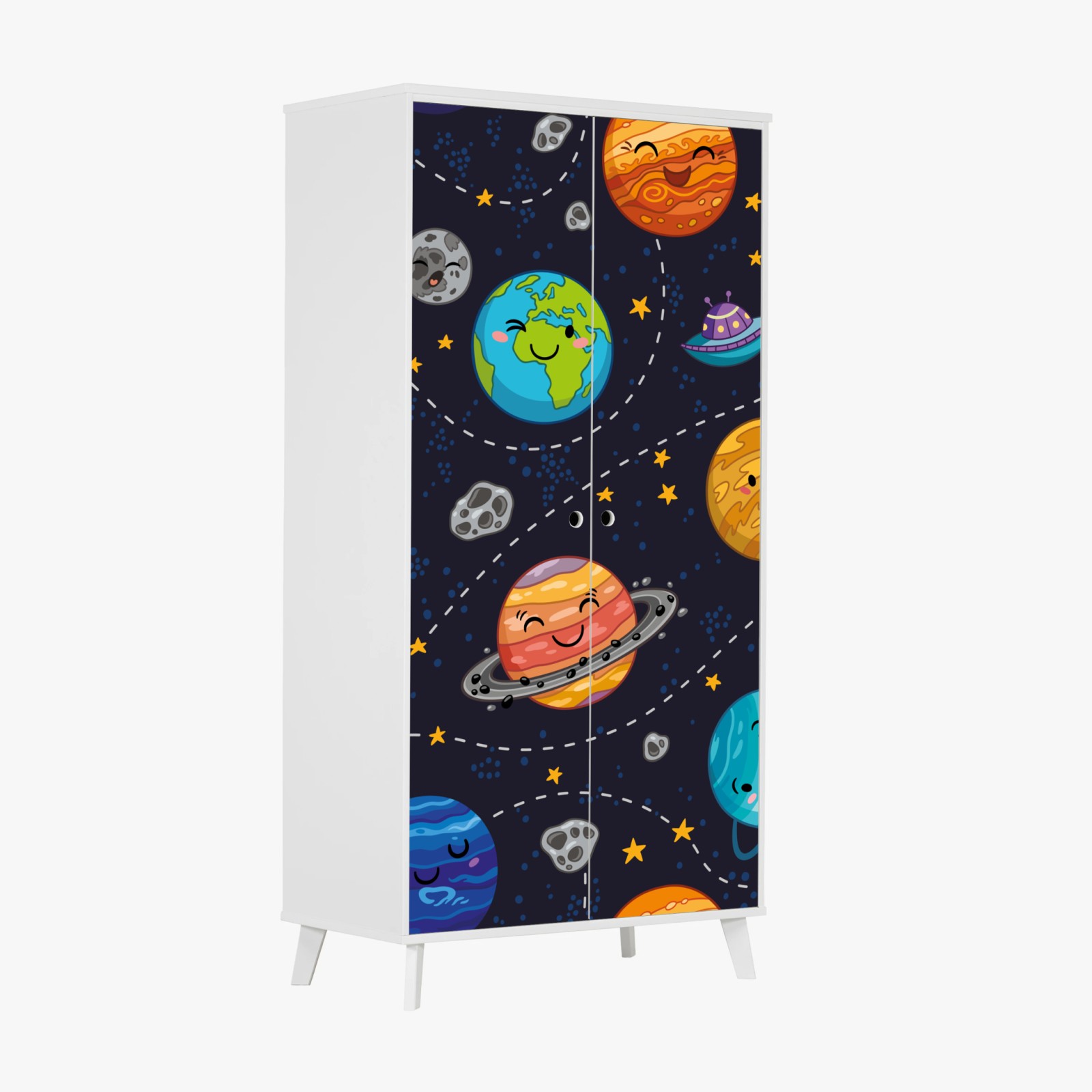 Schrankaufkleber Lächelnde planeten im verspielten weltraummuster