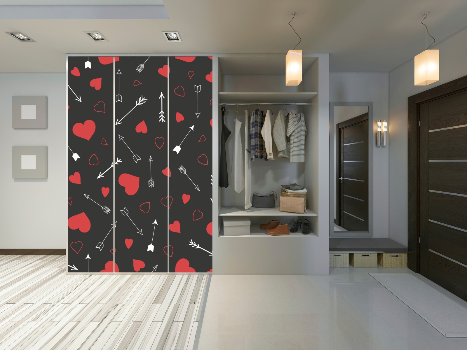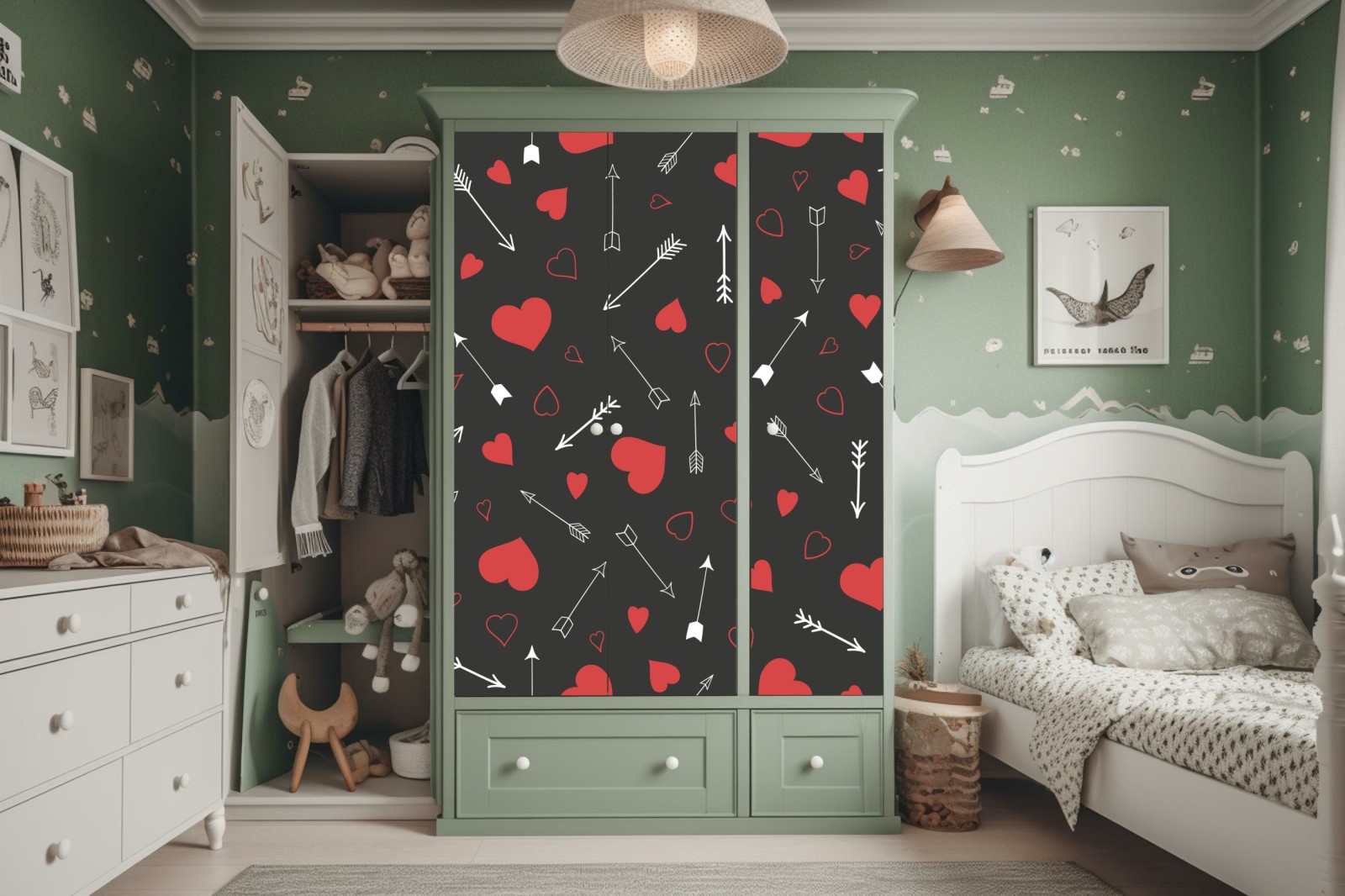 Schrankaufkleber muster aus roten herzen und pfeilen