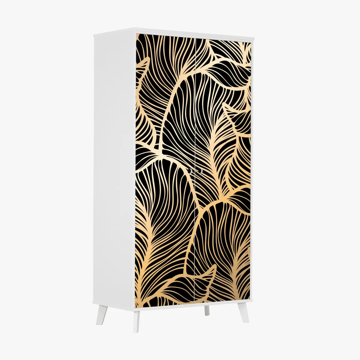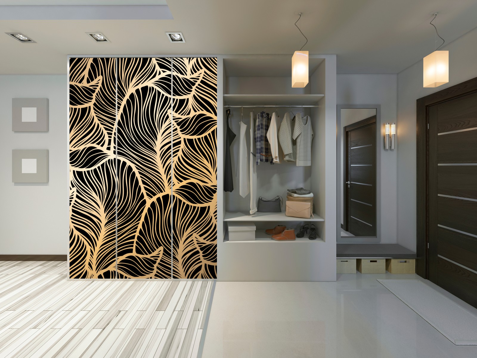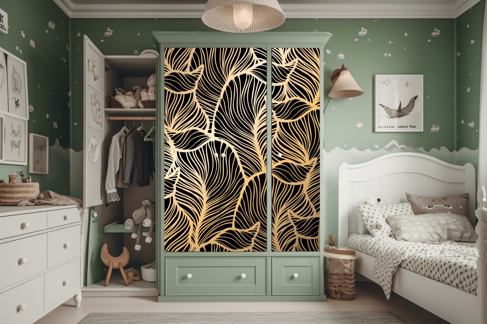 Schrankaufkleber goldenes blattmuster auf schwarzem hintergrund