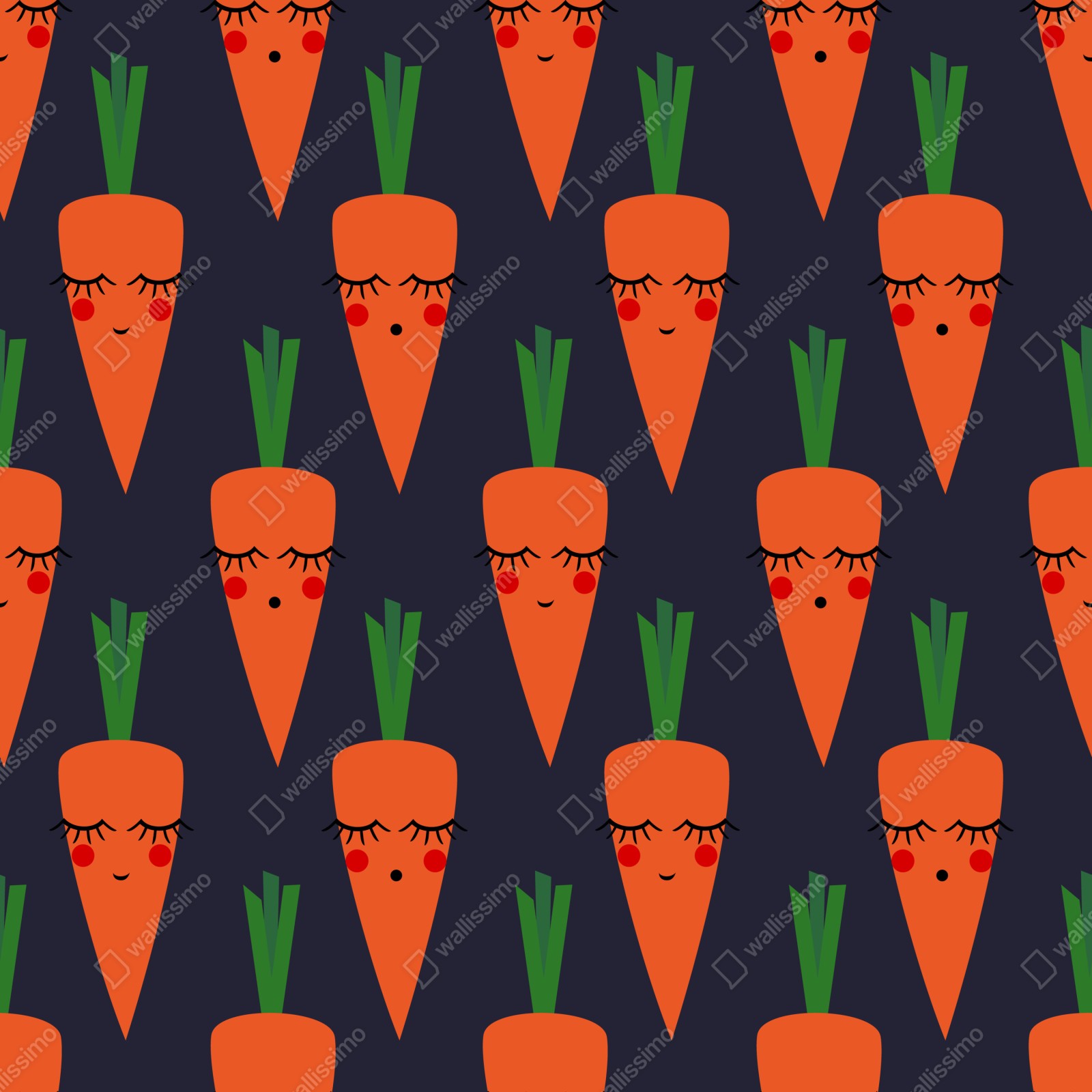 Verspieltes nahtloses Karottenmuster mit lächelnden Gesichtern bringt Farbe und Charme ins Kinderzimmer.