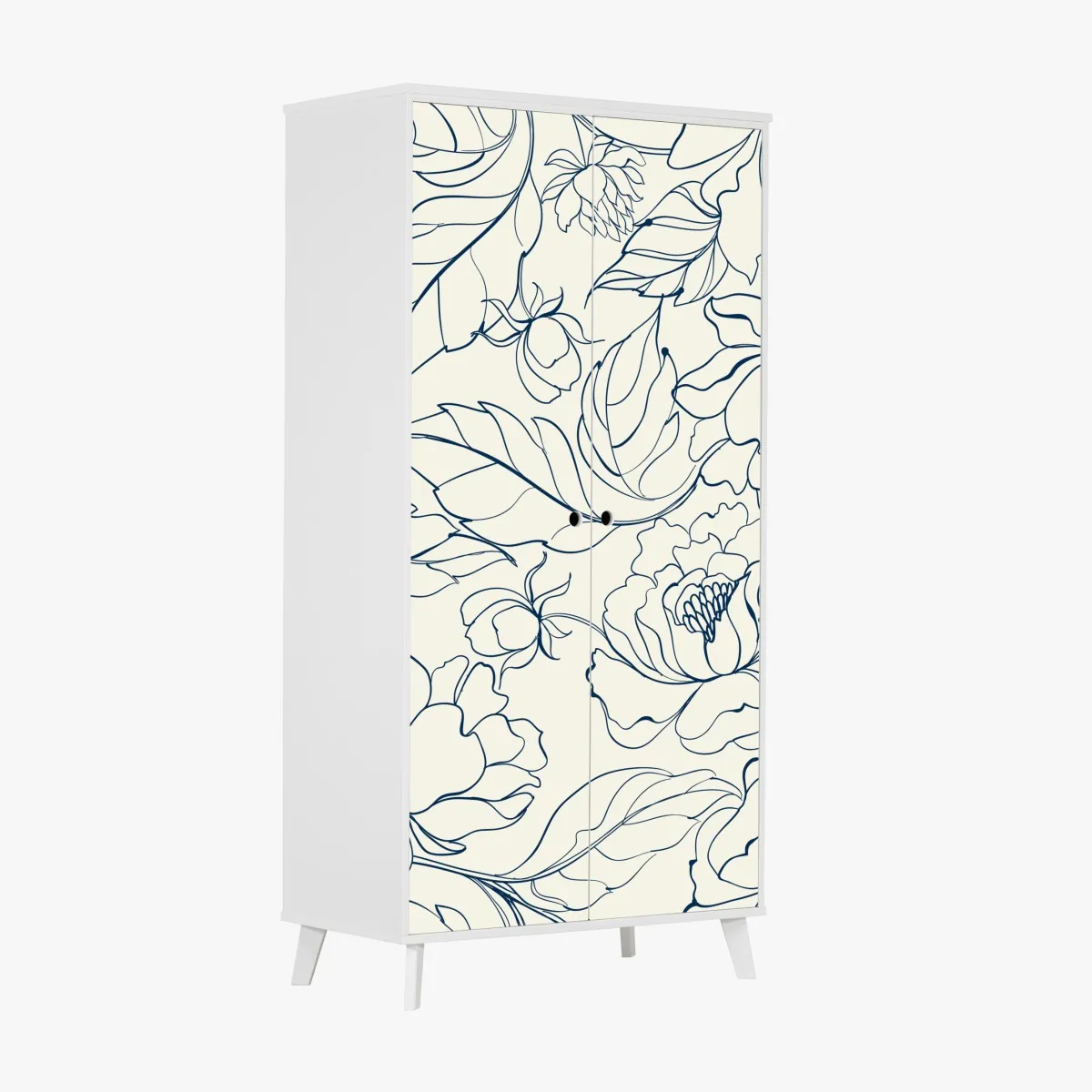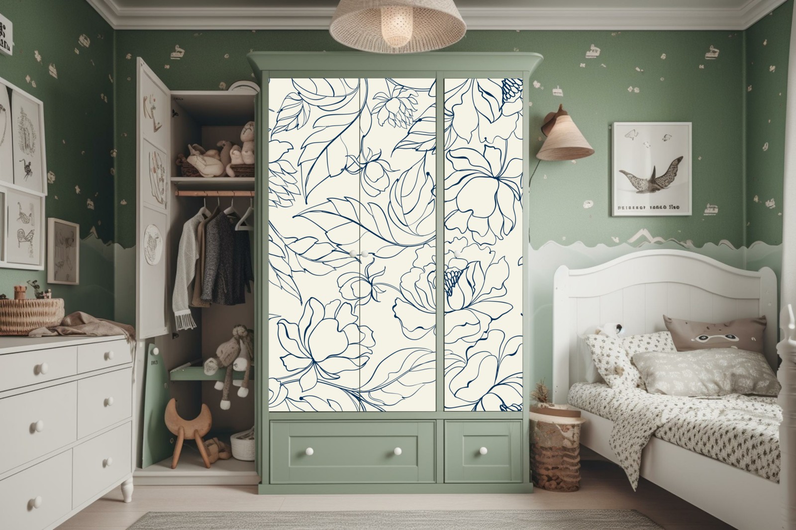 Schrankaufkleber handgezeichnetes marineblaues blumenmuster auf creme