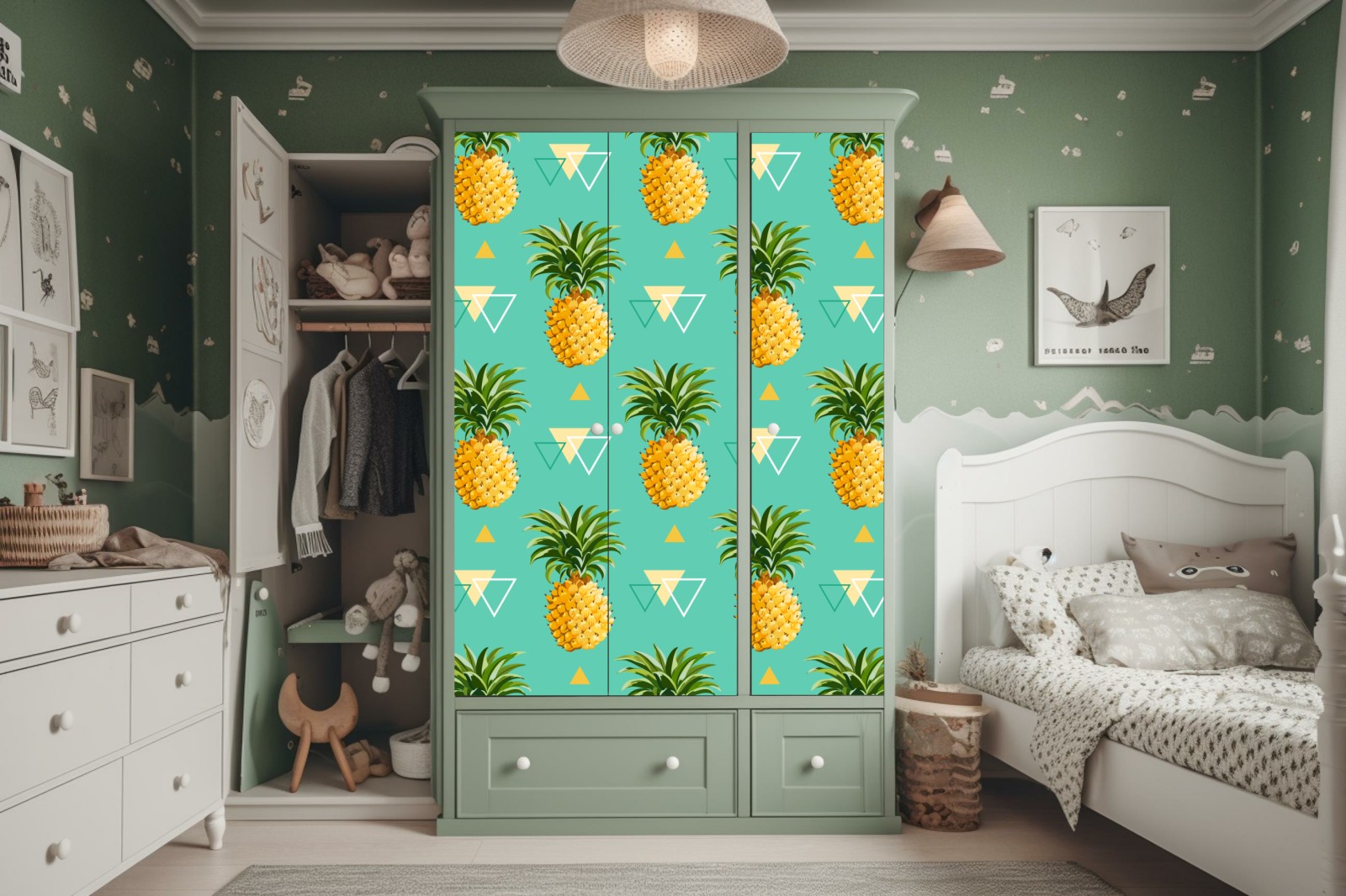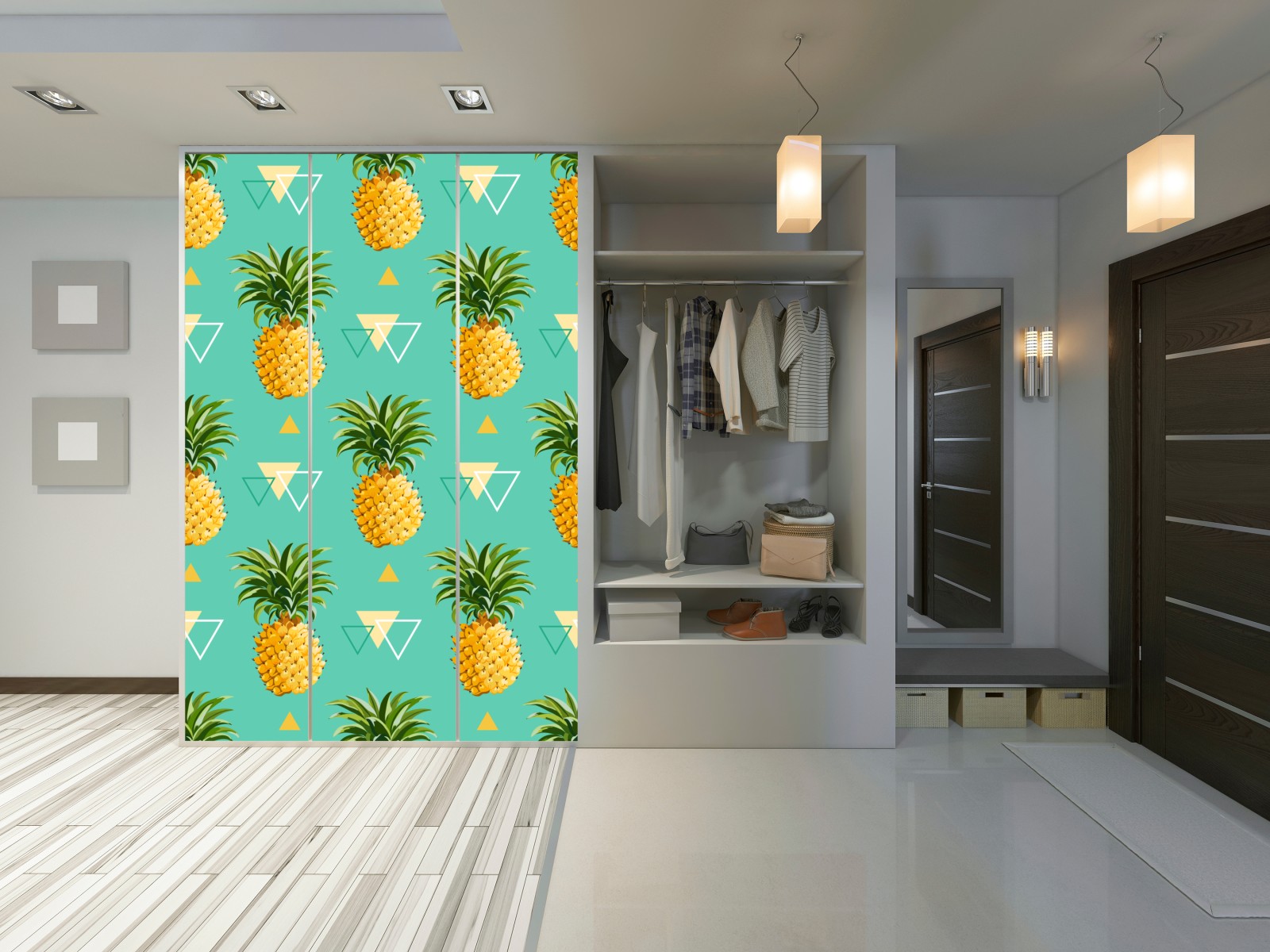Schrankaufkleber tropisches ananasmuster auf türkisfarbenem hintergrund