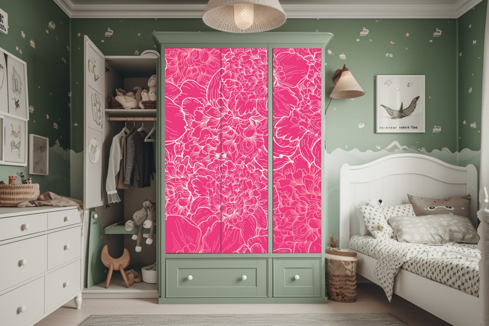 Schrankaufkleber leuchtendes rosa pfingstrosenmuster