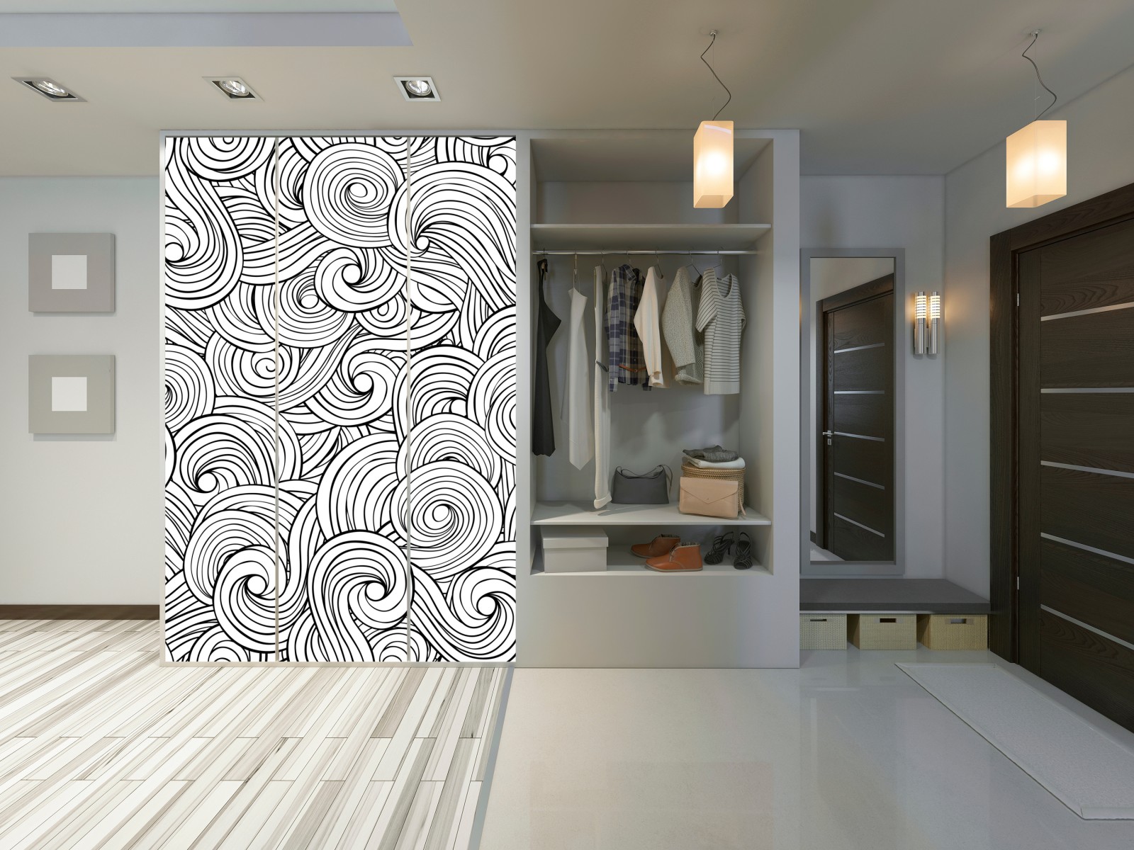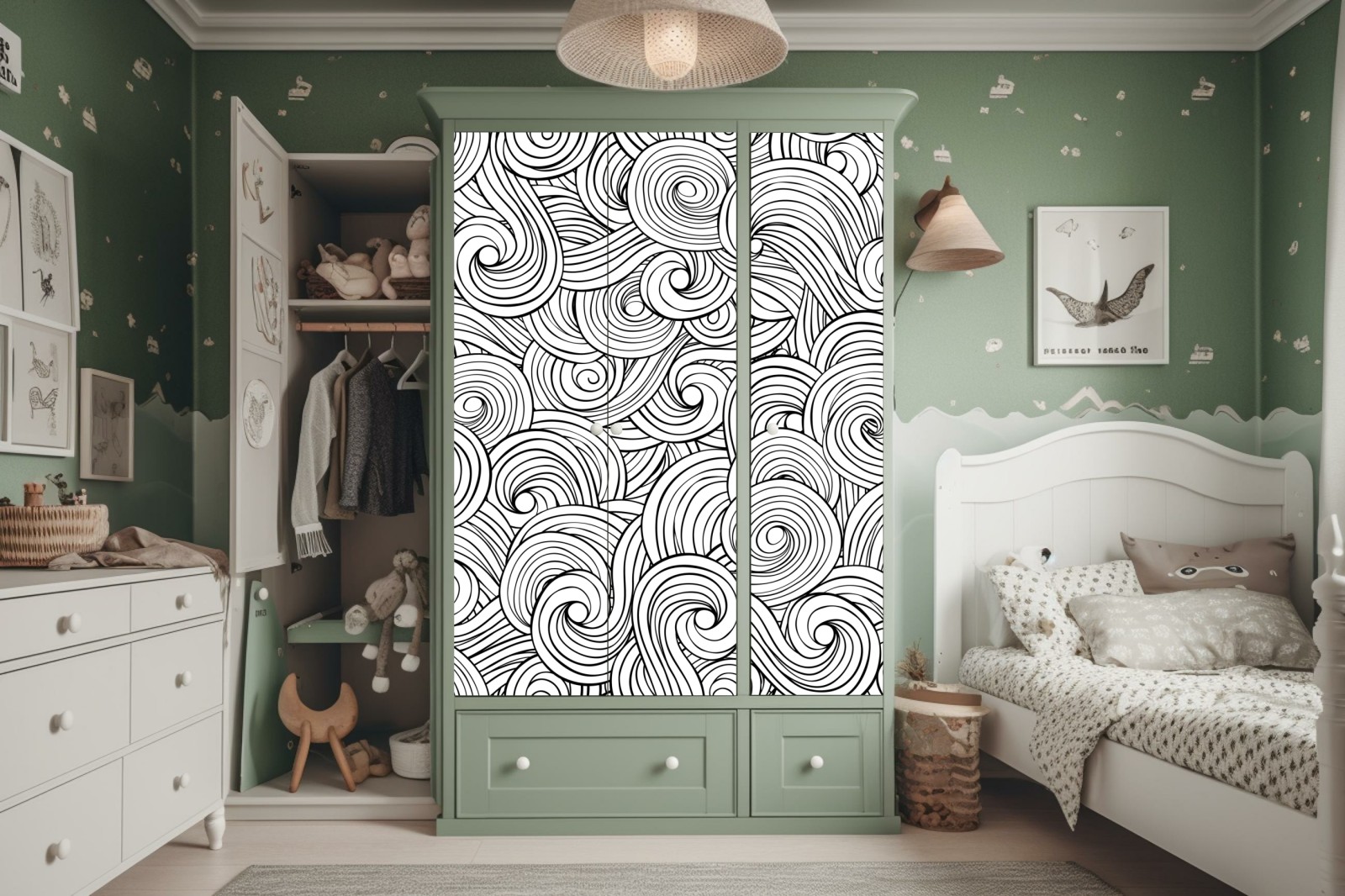 Schrankaufkleber schwarzweißes spiralmuster