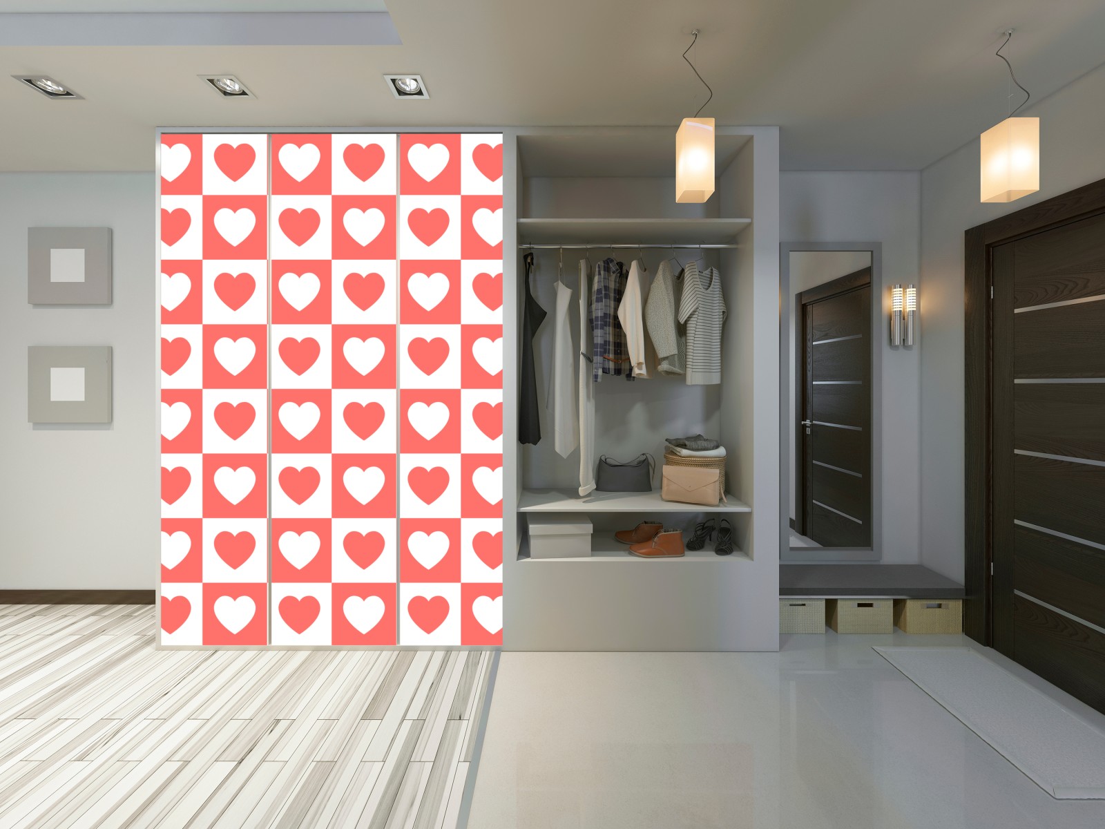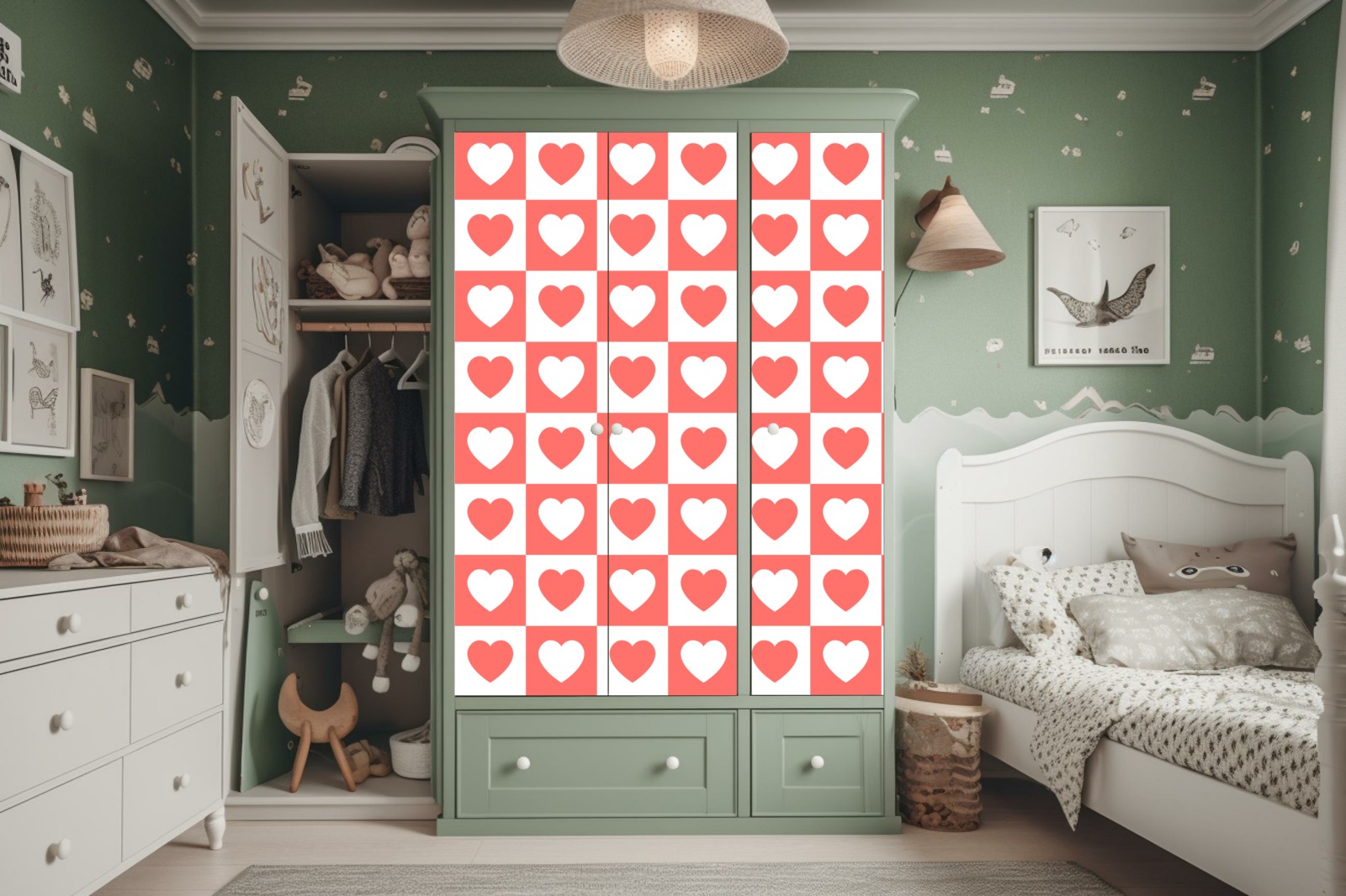 Verspieltes rosa Schachbrettmuster mit Herzen verleiht jedem Raum eine moderne, romantische Note und eignet sich besonders für Kinderzimmer oder als Valentinsdeko.