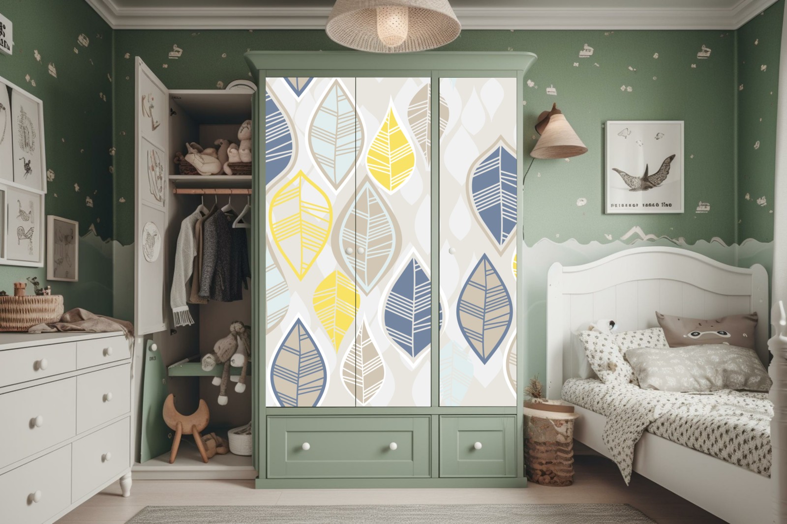 Schrankaufkleber skandinavisches blättermuster in sanften neutralen tönen