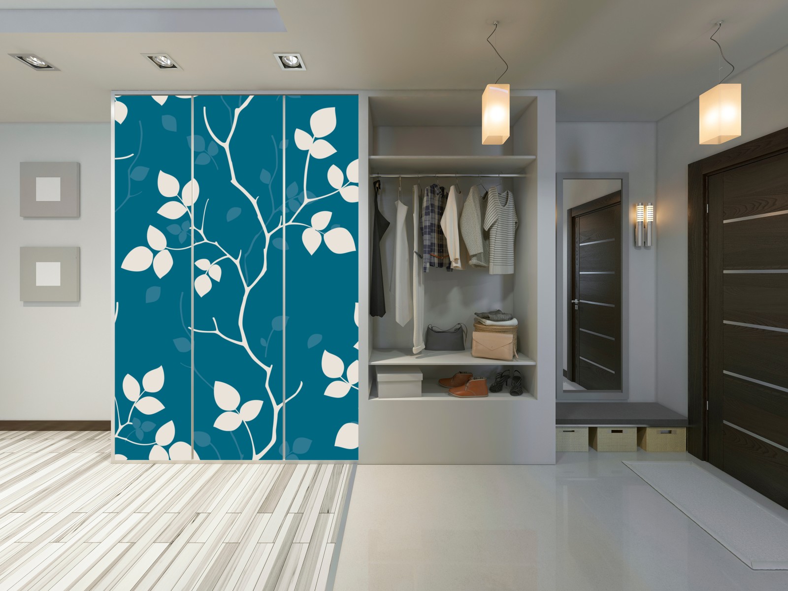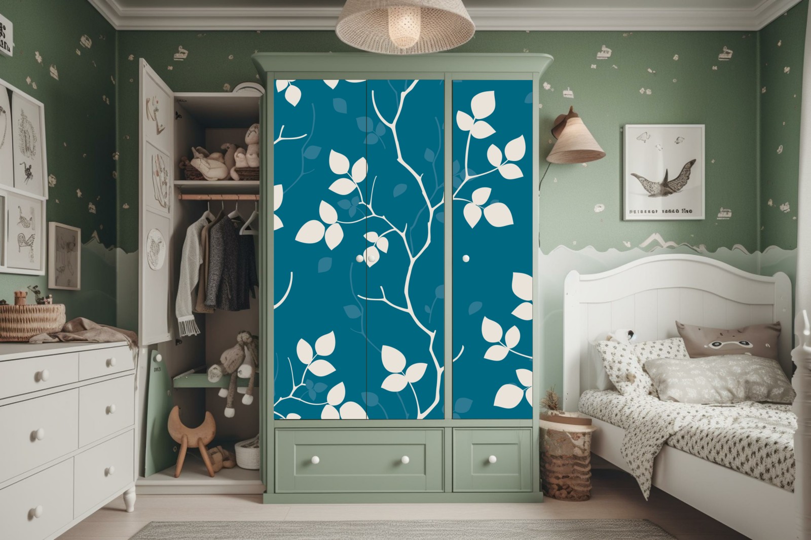 Schrankaufkleber türkises botanisches blattmuster