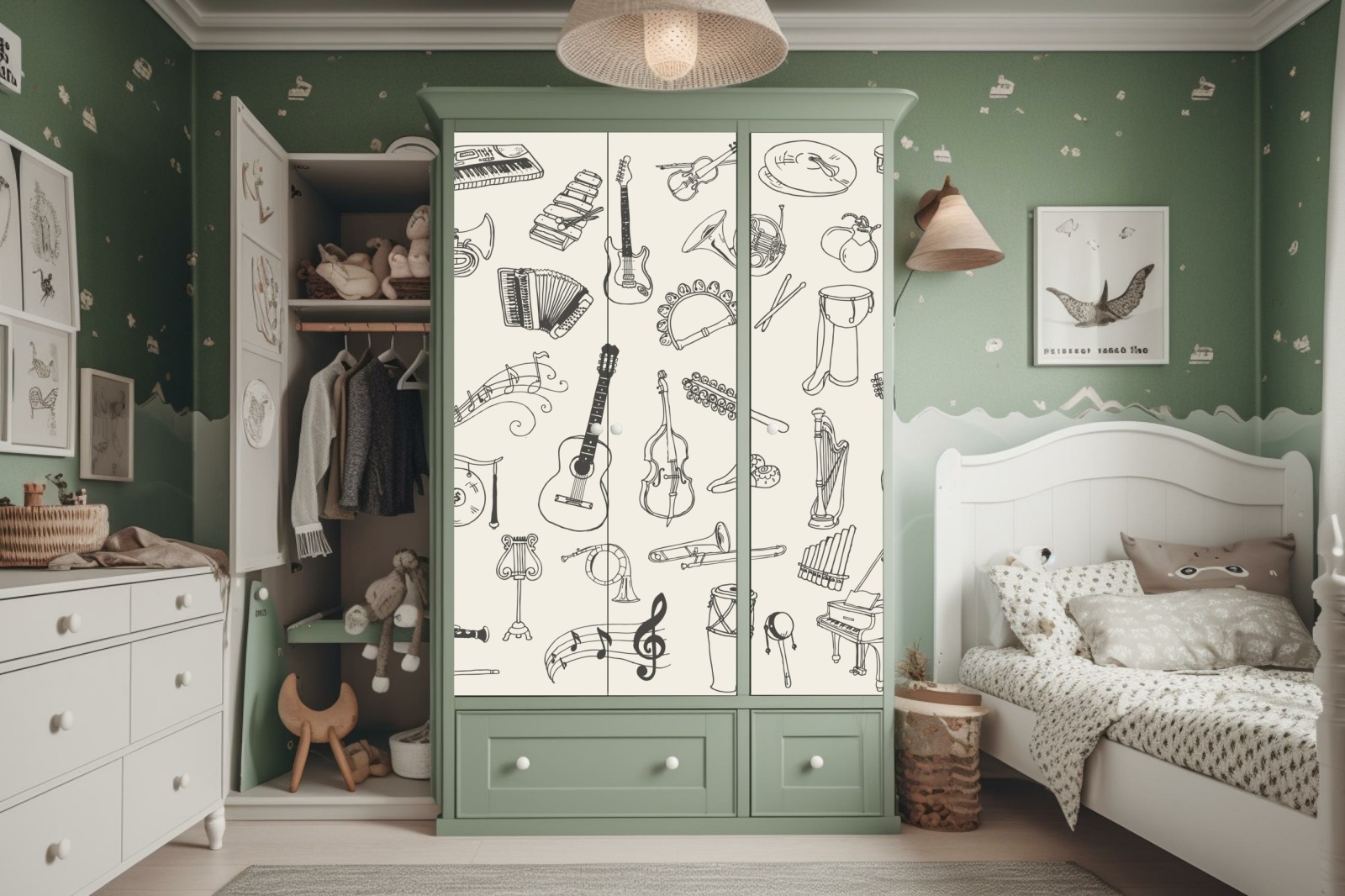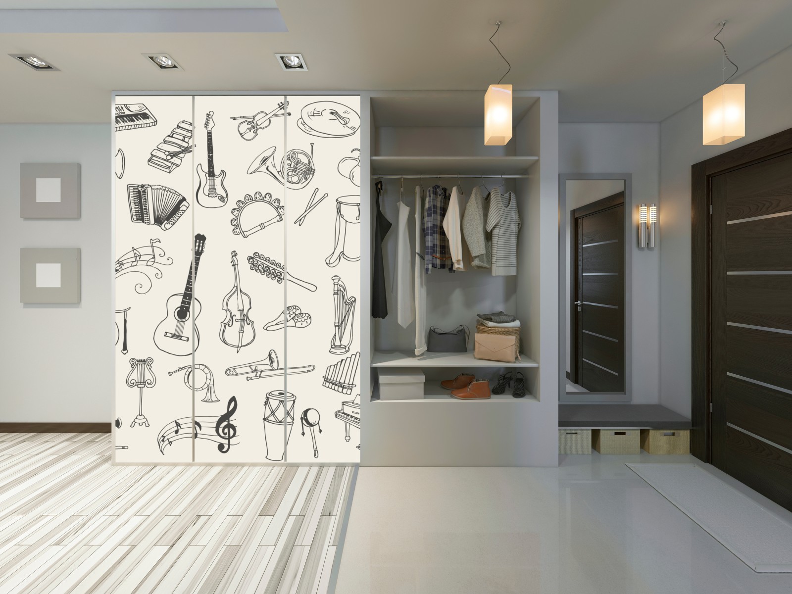 Schrankaufkleber handgezeichnete musikinstrumente collage